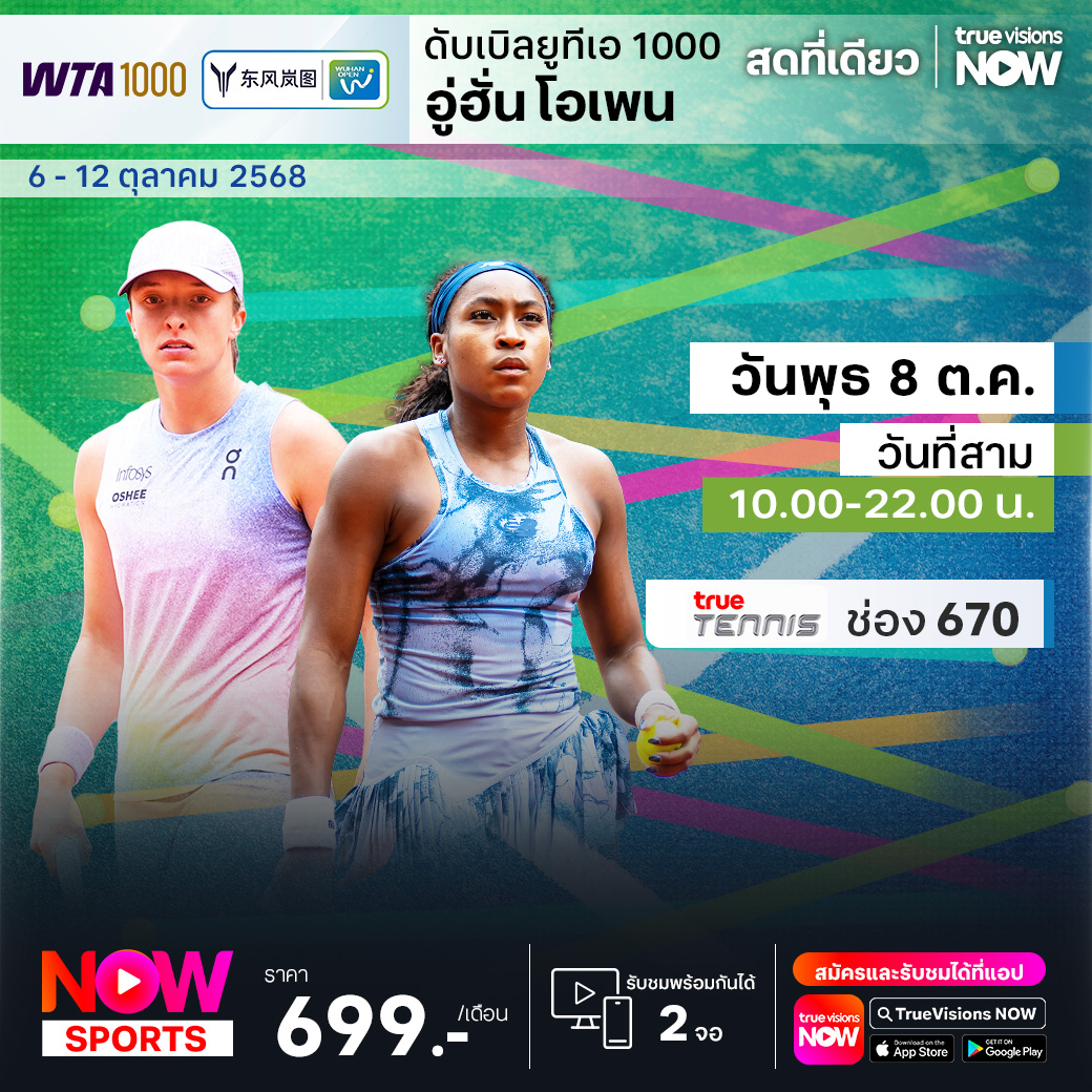 เทนนิสหญิง ดับเบิลยูทีเอ ทัวร์ รายการใหญ่ ยังคงแข่งขันในประเทศจีนอย่างต่อเนื่อง สัปดาห์นี้ไปแข่งขันกันที่เมือง อู่ฮั่น เป็นรายการระดับ ระดับ WTA 1000 รายการสุดท้ายของปี บรรดานักเทนนิสระดับโลกเข้าร่วมการแข่งขันอย่างคับคั่ง รวมถึงนักเทนนิสเจ้าถิ่น เจิ้ง ฉินเหวิน ร่วมลุ้นกันว่าใครจะคว้าแชมป์รายการนี้ไปครอง ชมสด ครบทุกรอบ ที่ ทรูวิชั่นส์