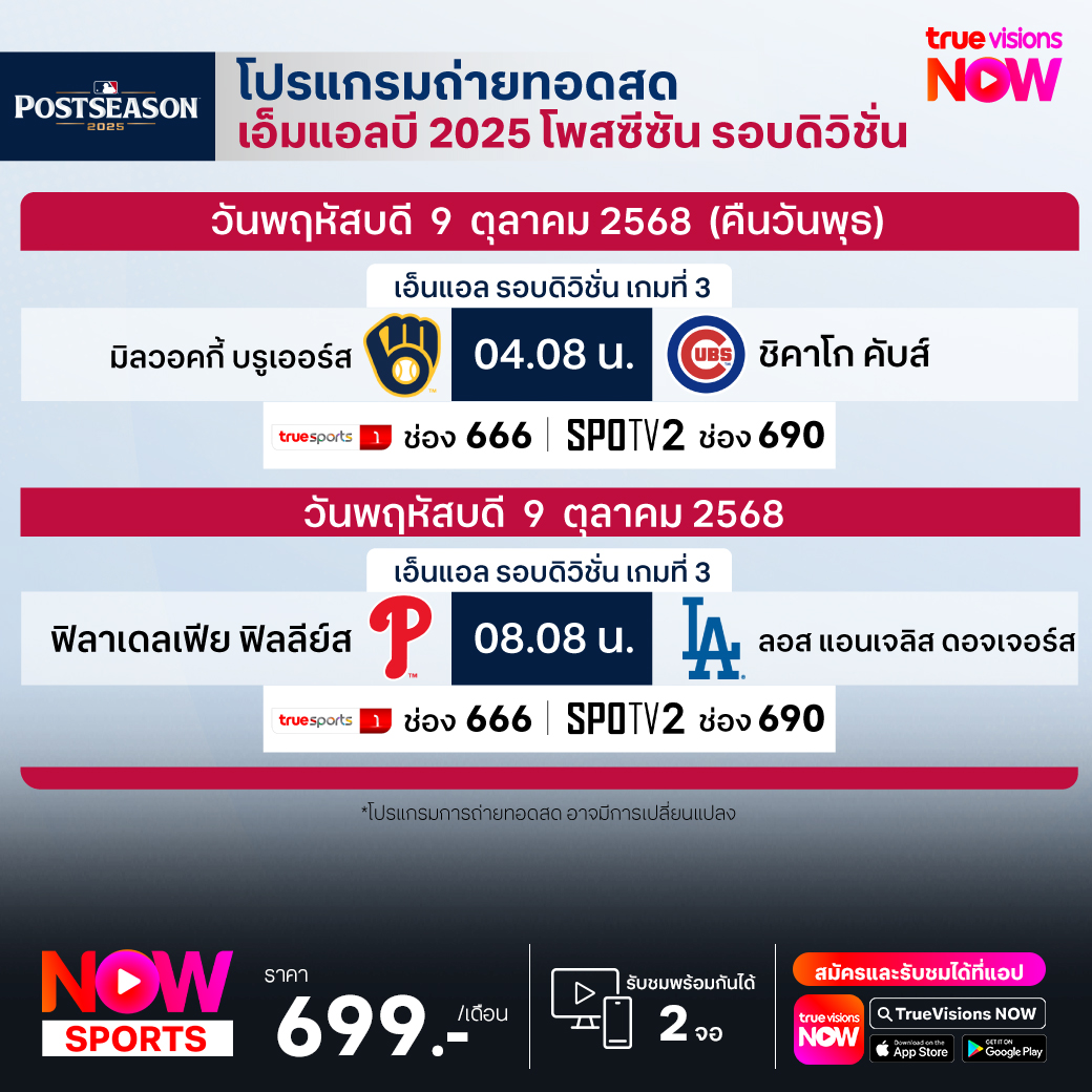Philadelphia Plillies VS Los Angeles Dodgers เวลา08.08 ทางช่อง TS 1 (666) / SPOTV2 (690)