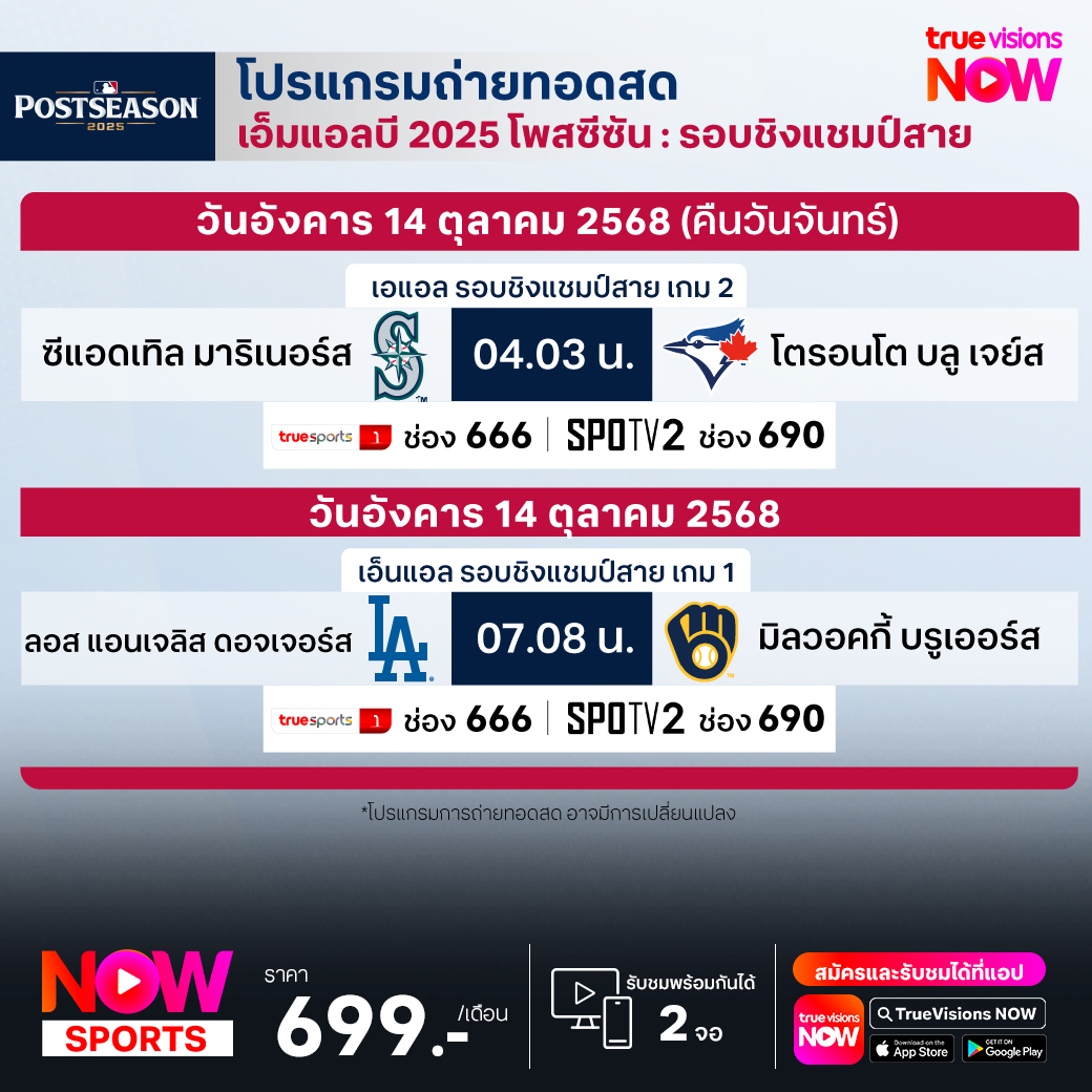 Seattle Mariners Vs Toronto Blue Jays เวลา 04.03 ทางช่อง TS 1 (666) /SPOTV2 (690)