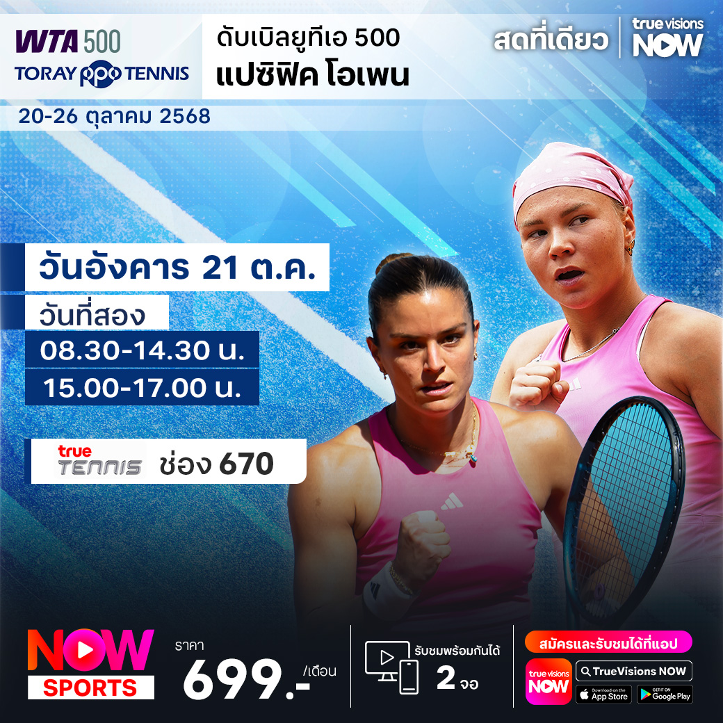 เทนนิสหญิง ดับเบิ้ลยูทีเอ ทัวร์ สัปดาห์นี้ไปกันที่รายการระดับ WTA 500 รายการสุดท้ายของปีอย่าง แปซิฟิก โอเพ่น ที่กรุงโตเกียว ประเทศญี่ปุ่น ร่วมลุ้นกันว่าใครจะคว้าแชมป์รายการนี้ รวมไปถึงต้องลุ้นว่านักเทนนิสคนไหนจะมาเก็บคะแนนของตัวเอง เพื่อสร้างโอกาสไปแข่งในรายการ WTA Finals รายการใหญ่ปิดท้ายปี ชมสด ครบทุกรอบ ที่ ทรูวิชั่นส์
