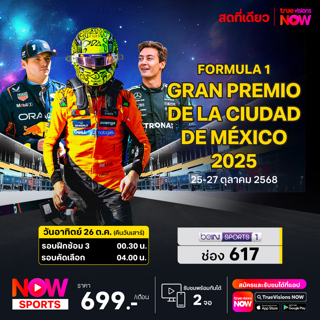 ศึก ฟอร์มูล่า วัน เดินทางมาถึงช่วงโค้งสุดท้ายของฤดูกาล 2025 แล้ว ความเข้มข้น ดุเดือด เร้าใจ ยิ่งเพิ่มขึ้นตามลำดับ เพราะผลงานตั้งแต่ช่วงนี้เป็นต้นไปถือว่าสำคัญและมีความหมายสุดๆ สัปดาห์นี้พบกับรายการ กรังด์ปรีซ์ ออฟ เม็กซิโก ที่สังเวียน เอร์มาโนส ฮ็อดริเกซ เซอร์กิต ประเทศเม็กซิโก ชมสด ครบทุกช่วงการแข่งขัน ที่ ทรูวิชั่นส์