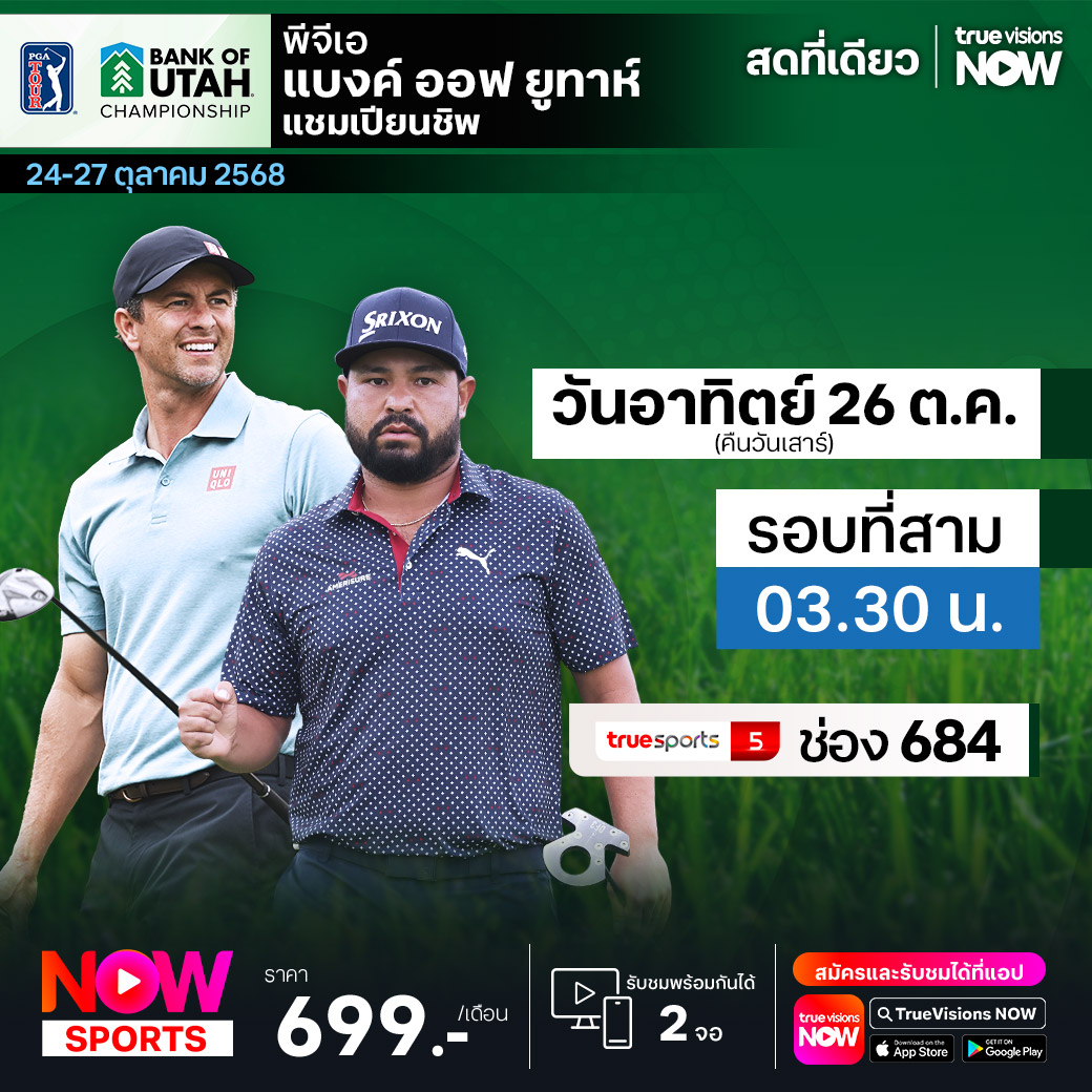 แฟนกีฬากอล์ฟ ติดตามชมกันแบบต่อเนื่องกับศึก พีจีเอ ทัวร์ ฤดูกาล 2025 ช่วง เฟดเอ็กซ์ คัพ ฟอลล์ ซีรี่ส์ สัปดาห์นีัพบกับรายการ แบงค์ ออฟ ยูท่าห์ แชมเปี้ยนชิพ จากสนาม แบล็ค เดสเสิร์ท รีสอร์ท กอล์ฟ คลับ ในรัฐยูท่าห์ ประเทศสหรัฐอเมริกา กับเงินรางวัลให้ไล่ล่ากันถึง 6,000,000 เหรียญสหรัฐฯ ลุ้นกันว่าใครจะคว้าแชมป์ปีนี้ไปครอง ชมสด ครบทุกรอบ ที่ ทรูวิชั่นส์