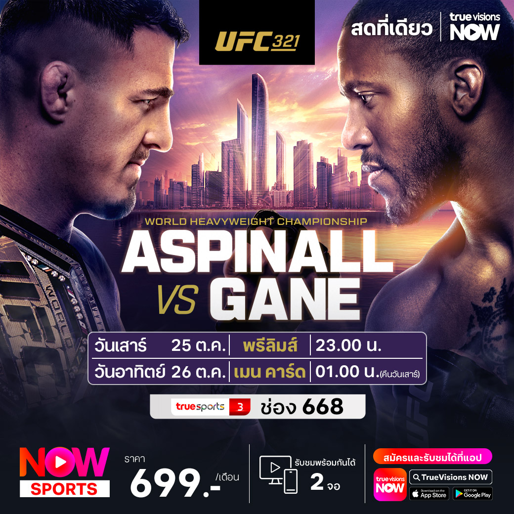 แชมป์รุ่นเฮฟวี่เวต ระหว่าง ทอม แอสปินอลล์ เจ้าของตำแหน่งชาวอังกฤษ พบผู้ท้าชิงสุดอันตรายจากฝรั่งเศส ซีริล กาน ร่วมด้วยรุ่นสตรอว์เวตหญิง ระหว่างสองนัดสู้สาวจากแดนแซมบ้า เวอร์น่า แจนดิโรบ้า กับ แม็คเคนซี่ เดิร์น ชมสด เอ็กซ์คลูซีฟ จุใจ ตั้งแต่รอบพรีลิมส์ ถึง เมน คาร์ด ที่ ทรูวิชั่นส์
