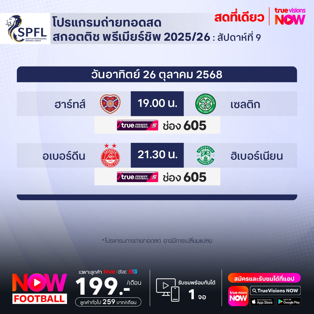 Aberdeen vs Hibernian เวลา 21.30-23.30 ทางช่องTPF 5(605)