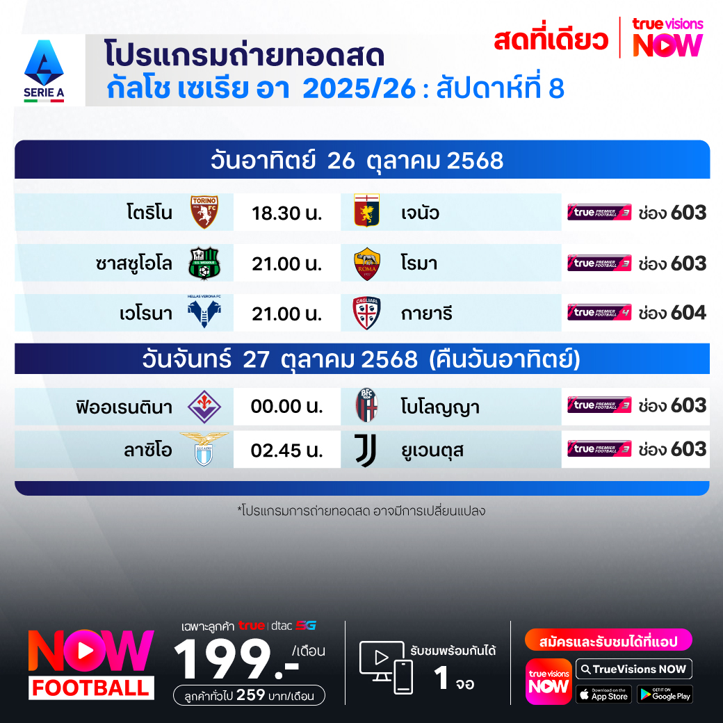 Torino vs Genoa เวลา 18.30-20.30 ทางช่องTPF 3(603)