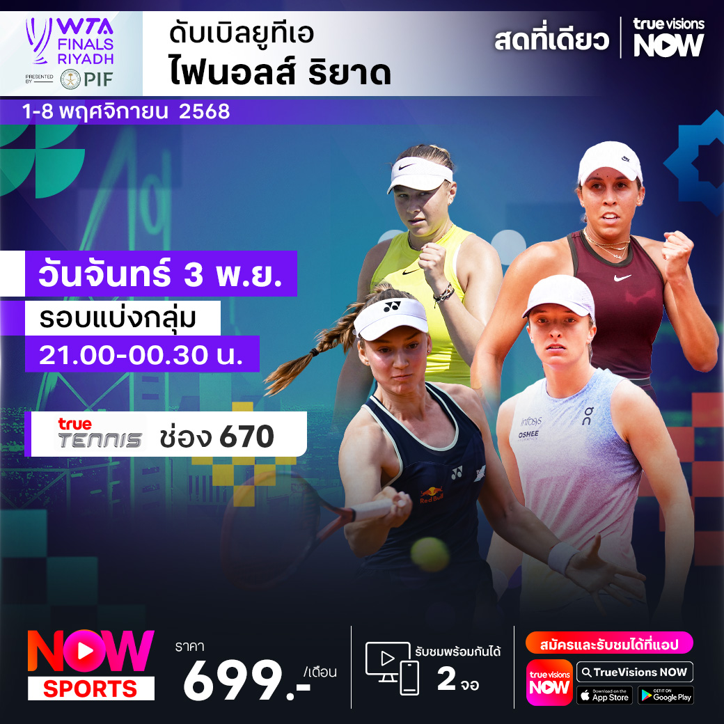 เทนนิสหญิงรายการใหญ่ส่งท้ายปี ดับเบิ้ลยูทีเอ ไฟนอลส์ รายการที่รวมนักเทนนิสหญิงที่ดีที่สุด 8 คนของโลกในปี 2025 มาแข่งขัน เพื่อหาสุดยอดนักเทนนิสหญิงประจำปี 2025 ที่เมืองริยาดห์ ประเทศซาอุดิอาระเบีย โดยแชมป์เก่าในปีที่ผ่านมาคือ โคโค กอฟฟ์ ยอดนักเทนนิสหญิงชาวอเมริกัน และในปีนี้เธอได้สิทธิ์ป้องกันแชมป์ด้วย ร่วมลุ้นกันว่าใครจะคว้าแชมป์รายการใหญ่ รายการสุดท้ายไปครอง ชมสด ครบทุกรอบ ที่ ทรูวิชั่นส์