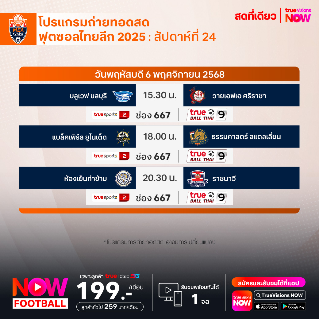 ห้องเย็นท่าข้าม คลับ พบ ราชนาวี เวลา 20.30 ทางช่อง TS 2 (667) / True Ball Thai 9 (NOW)