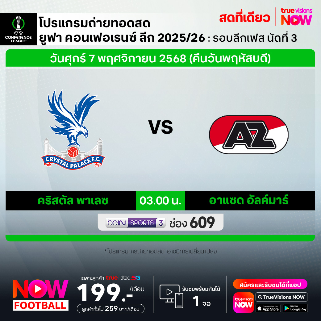 Crystal Palace vs AZ Alkmaar เวลา 03.00-05.00 ทางช่อง beIN 3 (609)