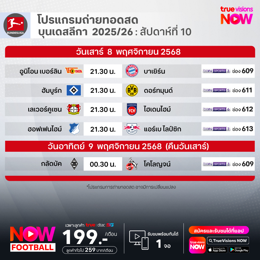 FC Union vs Bayern เวลา 21.30-23.30 ทางช่อง beIN 3 (609)