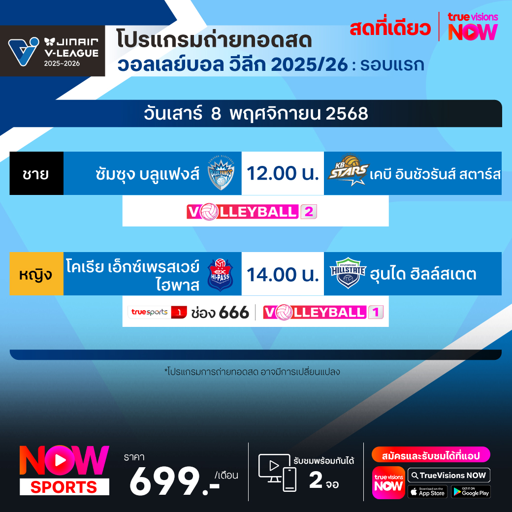 ซัมซุง บลูแฟงส์ พบ เคบี อินชัวรันส์ สตาร์ส เวลา 12.00 ทางช่อง Volleyball 2