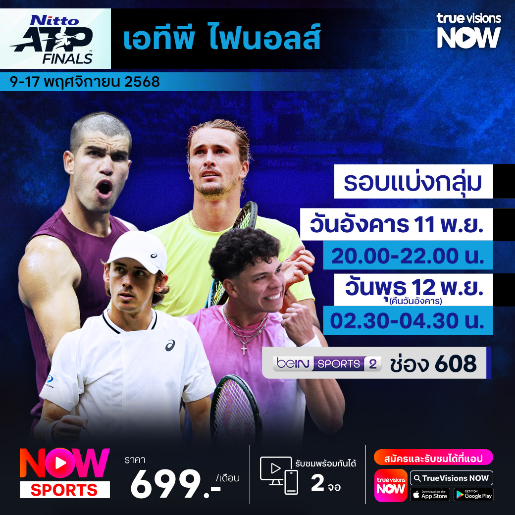 เทนนิสชายรายการใหญ่ส่งท้ายปี เอทีพี ไฟนอลส์ จากเมืองตูริน ประเทศอิตาลี รวมสุดยอดนักเทนนิสชาย 8 คนจากปี 2025 เข้าร่วมการแข่งขัน โดยวัดจากคะแนนสะสมทั้งปี เพื่อหาสุดยอดนักเทนนิสชายในปี 2025 นำโดย ยานนิค ซินเนอร์ นักเทนนิสเจ้าถิ่น, คาร์ลอส อัลคาราซ จากสเปน และจอมเก๋าอย่าง โนวัค ยอโควิช ร่วมลุ้นว่าใครจะคว้าแชมป์รายการใหญ่ รายการสุดท้ายของปีไปครอง ชมสด ครบทุกรอบ ที่ ทรูวิชั่นส์