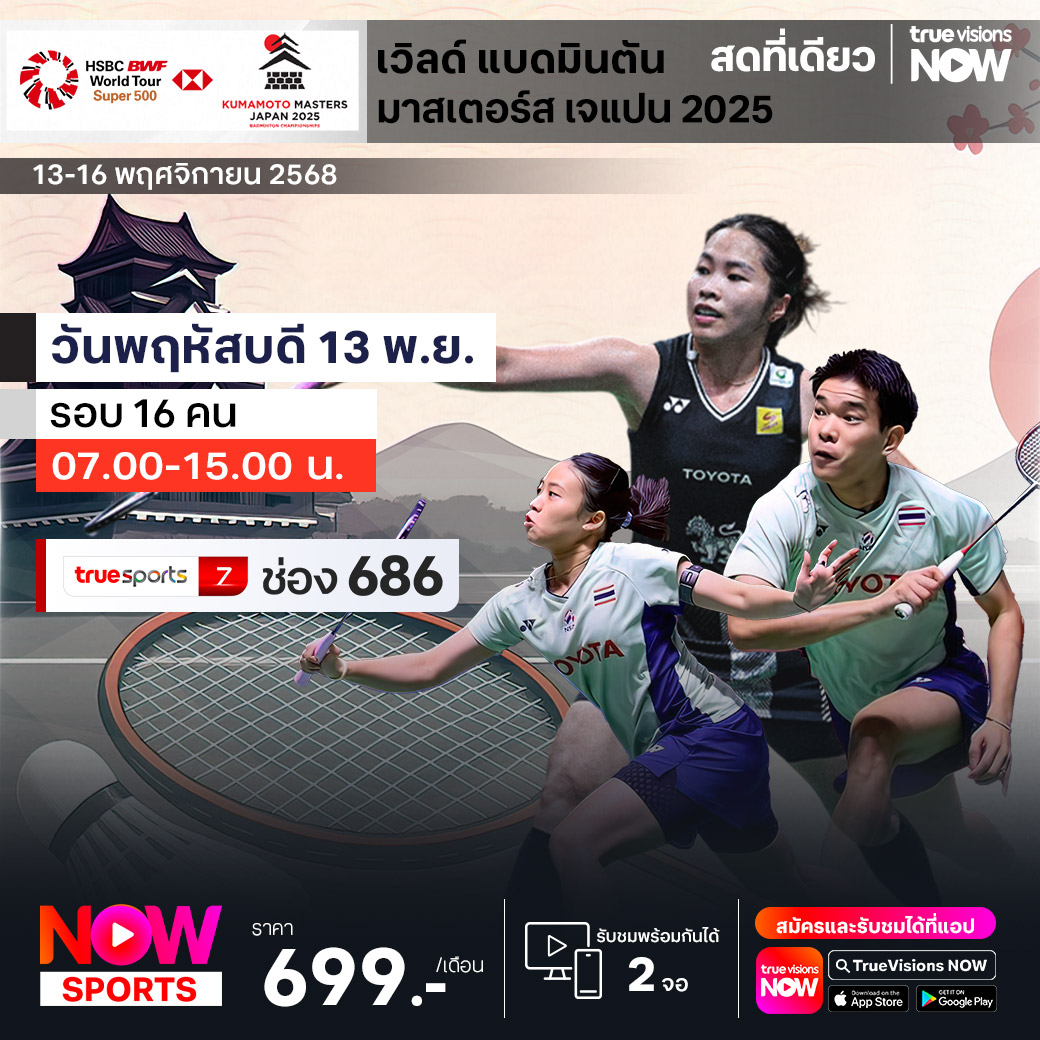 แฟนๆ กีฬาแบดมินตัน ห้ามพลาดกับการแช่งขันแบดมินตันเก็บคะแนนสะสมโลกช่วงโค้งสุดท้ายของฤดูกาล 2025 สัปดาห์นี้ ไประเบิดความมันส์กันที่ประเทศญี่ปุ่น กับรายการแห่งศักดิ์ศรี ระดับเวิลด์ ทัวร์ ซูเปอร์ 500 คุมาโมโตะ มาสเตอร์ส เจแปน บรรดามือดีของเจ้าถิ่นลงสนามกันแบบครบๆ พร้อมด้วยนักกีฬาต่างชาติที่มาลุ้นแชมป์เช่นเดียวกับทีมนักแบดมินตันไทย เชียร์สะใจ ที่ ทรูวิชั่นส์