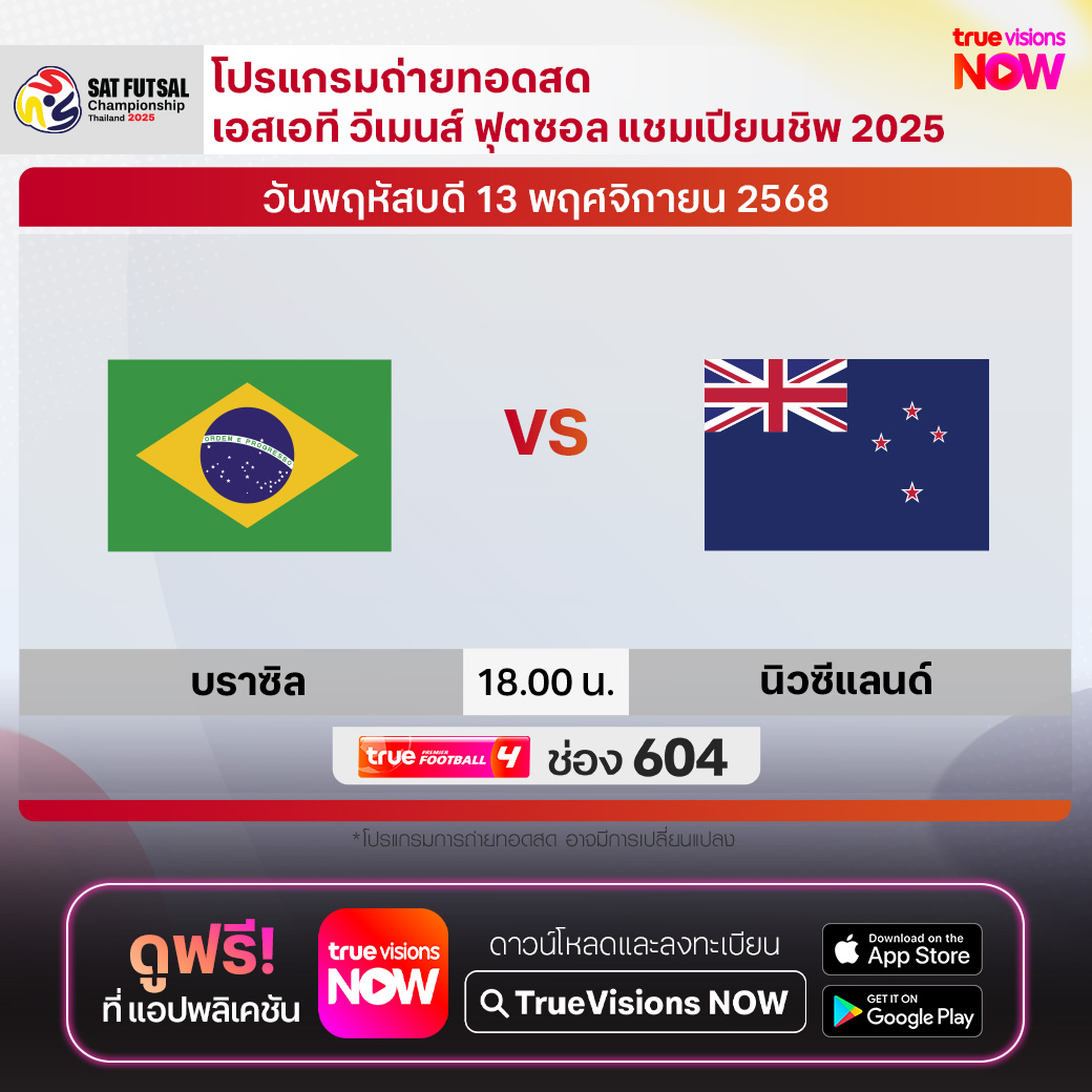 Brazil vs New Zealand เวลา 18.00-20.00 ทางช่องTPF 4(604)