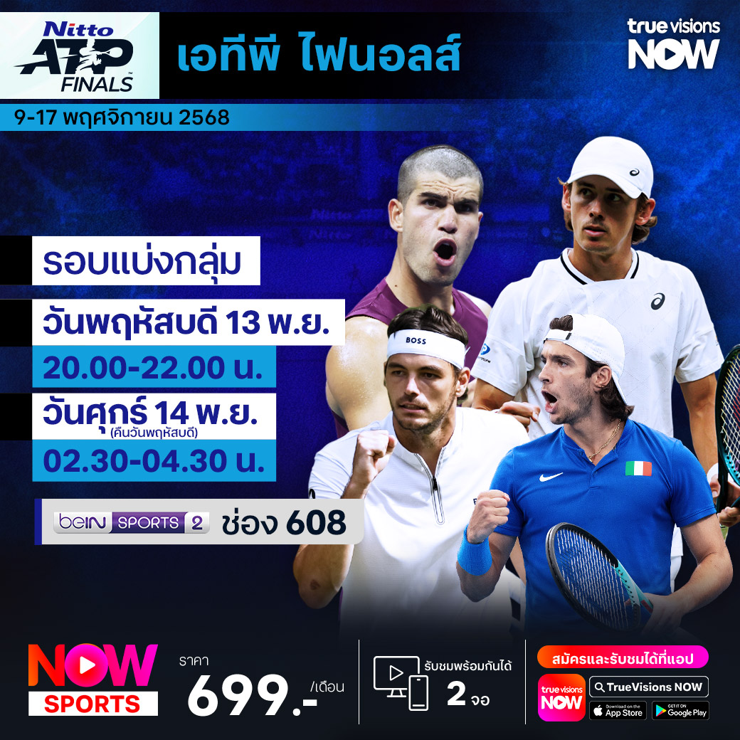 เทนนิสชายรายการใหญ่ส่งท้ายปี เอทีพี ไฟนอลส์ จากเมืองตูริน ประเทศอิตาลี รวมสุดยอดนักเทนนิสชาย 8 คนจากปี 2025 เข้าร่วมการแข่งขัน โดยวัดจากคะแนนสะสมทั้งปี เพื่อหาสุดยอดนักเทนนิสชายในปี 2025 นำโดย ยานนิค ซินเนอร์ นักเทนนิสเจ้าถิ่น, คาร์ลอส อัลคาราซ จากสเปน และจอมเก๋าอย่าง โนวัค ยอโควิช ร่วมลุ้นว่าใครจะคว้าแชมป์รายการใหญ่ รายการสุดท้ายของปีไปครอง ชมสด ครบทุกรอบ ที่ ทรูวิชั่นส์