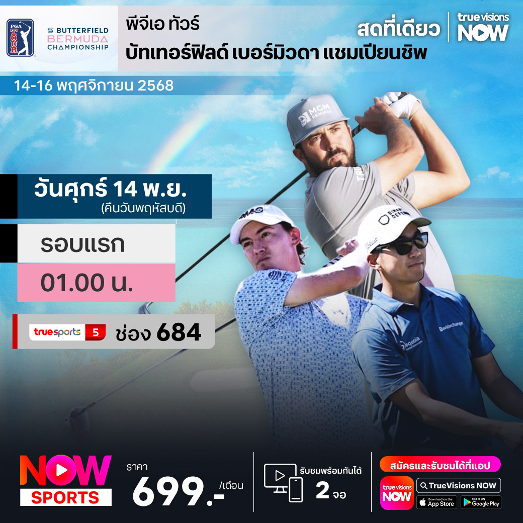กอล์ฟ พีจีเอ ทัวร์ มาถึงช่วง ฟอลล์ ซีรี่ส์ ซึ่งเป็นช่วงสุดท้ายของปี สัปดาห์นี้ แฟนๆ กอล์ฟจะได้สัมผัสเกมที่เข้มข้น ท่ามกลางบรรยากาศที่สวยงามของสนามแข่งขันในรายการ บัทเทอร์ฟิลด์ เบอร์มิวด้า แชมเปี้ยนชิพ ที่สนาม พอร์ท รอยัล กอล์ฟ คอร์ส ในเซาธ์แฮมป์ตัน เบอร์มิวด้า ชิงเงินรางวัลรวมถึง 6,000,000 เหรียญสหรัฐฯ ใครจะคว้าแชมป์ปีนี้ไปครอง ชมสด ครบทุกรอบ ที่ ทรูวิชั่นส์