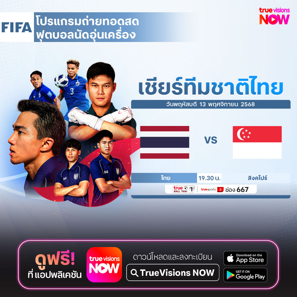 ไทย พบ สิงคโปร์ เวลา 19.30-21.30 ทางช่อง True Ball Thai 1 / TS 2 (667)