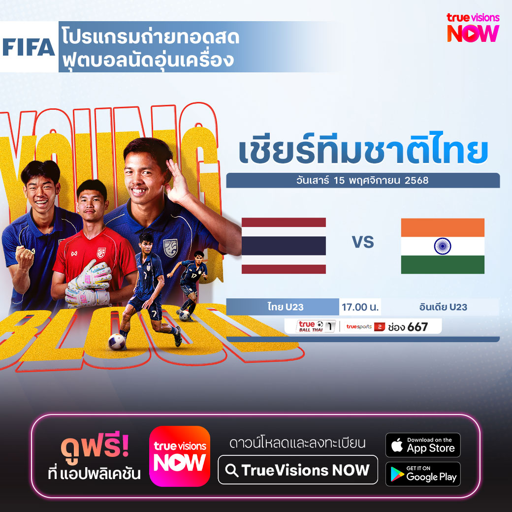 ไทย U23 พบ อินเดีย U23 เวลา 17.00-19.00 ทางช่องTrue Ball Thai 1 / TS 2 (667)