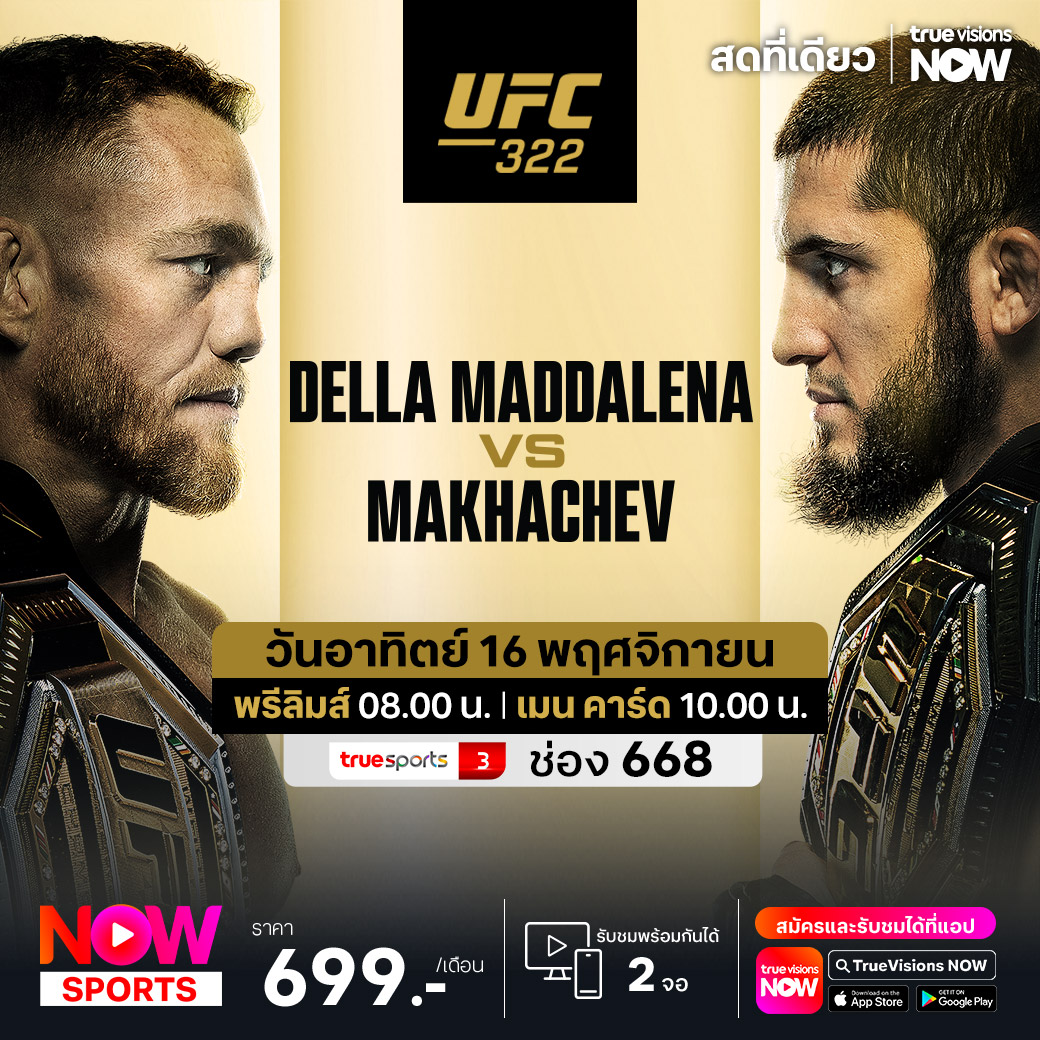 ศึกใหญ่ ซูเปอร์ไฟต์ ของเดือนนี้ ที่แฟนๆ กีฬาต่อสู้เฝ้ารอคอย พร้อมดวลเดือดกันที่สังเวียนระดับโลก เมดิสัน แควร์ การ์เด้น ในนครนิวยอร์ก ประเทศสหรัฐอเมริกา กับศึก ยูเอฟซี 322 คู่เอก ชิงแชมป์รุ่นเวลเตอร์เวต ระหว่าง แจ็ค เดลลา แมดดาลีน่า เจ้าของตำแหน่งชาวออสเตรเลียน กับผู้ท้าชิงจากรัสเซีย อิสลาม มาฮาเชฟ ที่มาลุ้นแชมป์รุ่นที่ 2 ร่วมด้วยชิงแชมป์ฟลายเวตหญิง วาเลนติน่า เชฟเชงโก้ ป้องกันแชมป์กับนักสู้สุดแกร่งจากจีน จาง เหว่ย ลี่ ชมสด ทั้งรอบพรีลิมส์ และ เมน คาร์ด ที่ ทรูวิชั่นส์