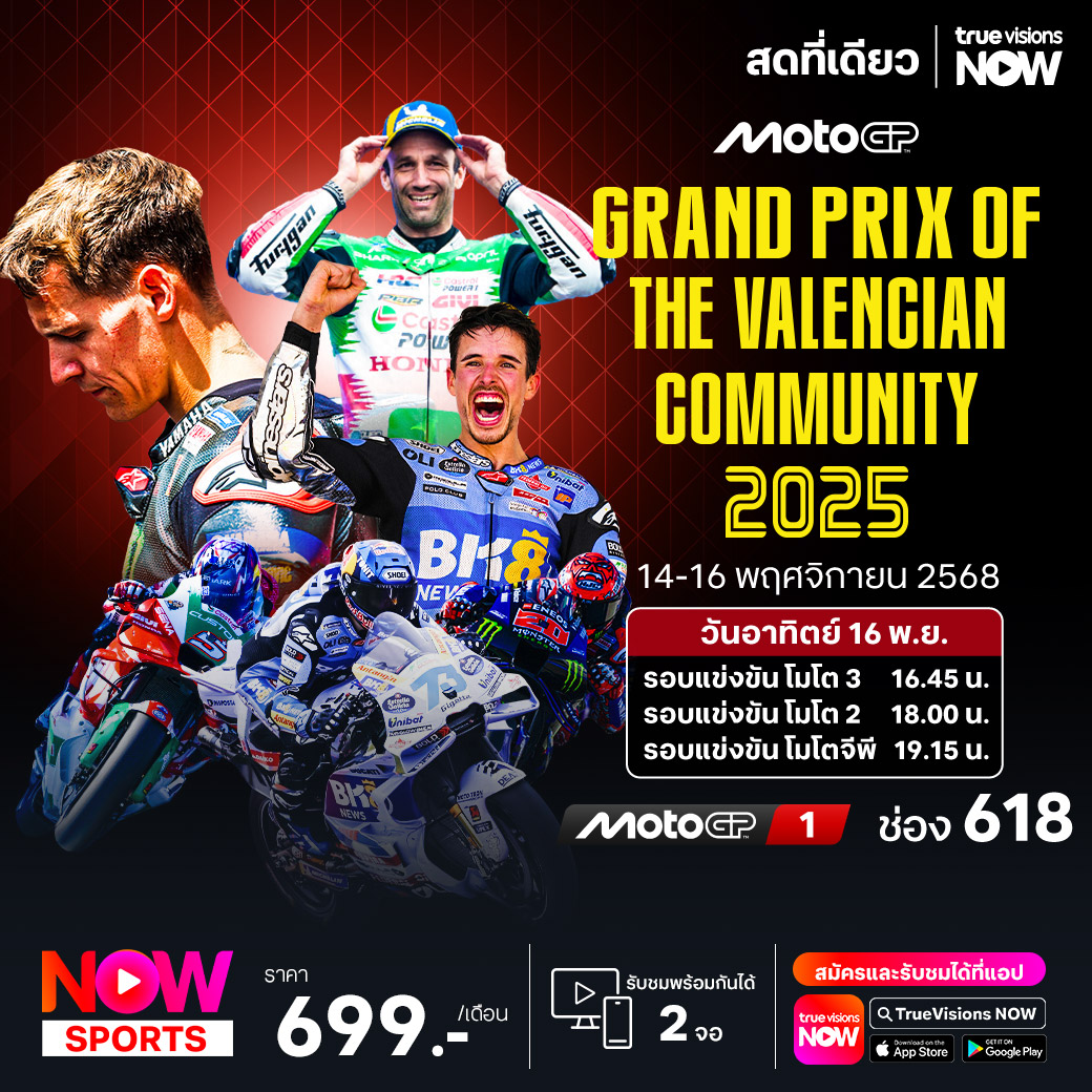 ศึก โมโต จีพี เวิลด์ แชมเปี้ยนชิพ ดวลเดือดตลอดทั้งปีมาแล้ว 21 สนามทั่วโลก สัปดาห์นี้ถึงเวลาสำคัญของสนามสุดท้าย มาบิดสุดไมล์ สั่งลากันให้สะใจ ที่เมืองบาเลนเซีย ประเทศสเปน กับสนามที่ 22 กรังด์ปรีซ์ ออฟ บาเลนเซียน คอมมูนิตี้ ที่สังเวียน ริคาร์โก้ ตอร์โม่ ใครจะได้ยืนบนโพเดี้ยม ทั้งในรุ่น โมโต 3, โมโต 2 และ โมโต จีพี ลุ้นกันสดๆ ครบทุกช่วงการแข่งขัน ที่ ทรูวิชั่นส์