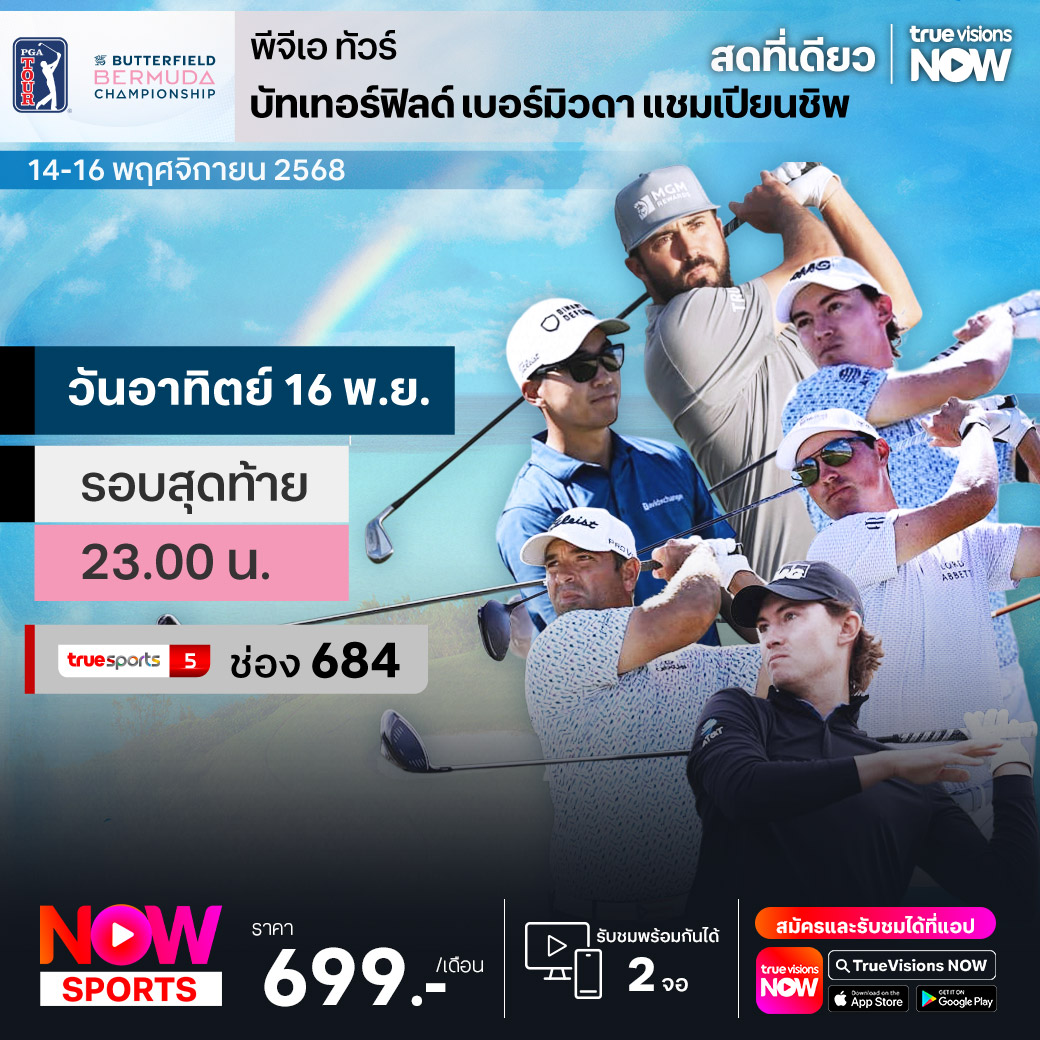 กอล์ฟ พีจีเอ ทัวร์ มาถึงช่วง ฟอลล์ ซีรี่ส์ ซึ่งเป็นช่วงสุดท้ายของปี สัปดาห์นี้ แฟนๆ กอล์ฟจะได้สัมผัสเกมที่เข้มข้น ท่ามกลางบรรยากาศที่สวยงามของสนามแข่งขันในรายการ บัทเทอร์ฟิลด์ เบอร์มิวด้า แชมเปี้ยนชิพ ที่สนาม พอร์ท รอยัล กอล์ฟ คอร์ส ในเซาธ์แฮมป์ตัน เบอร์มิวด้า ชิงเงินรางวัลรวมถึง 6,000,000 เหรียญสหรัฐฯ ใครจะคว้าแชมป์ปีนี้ไปครอง ชมสด ครบทุกรอบ ที่ ทรูวิชั่นส์