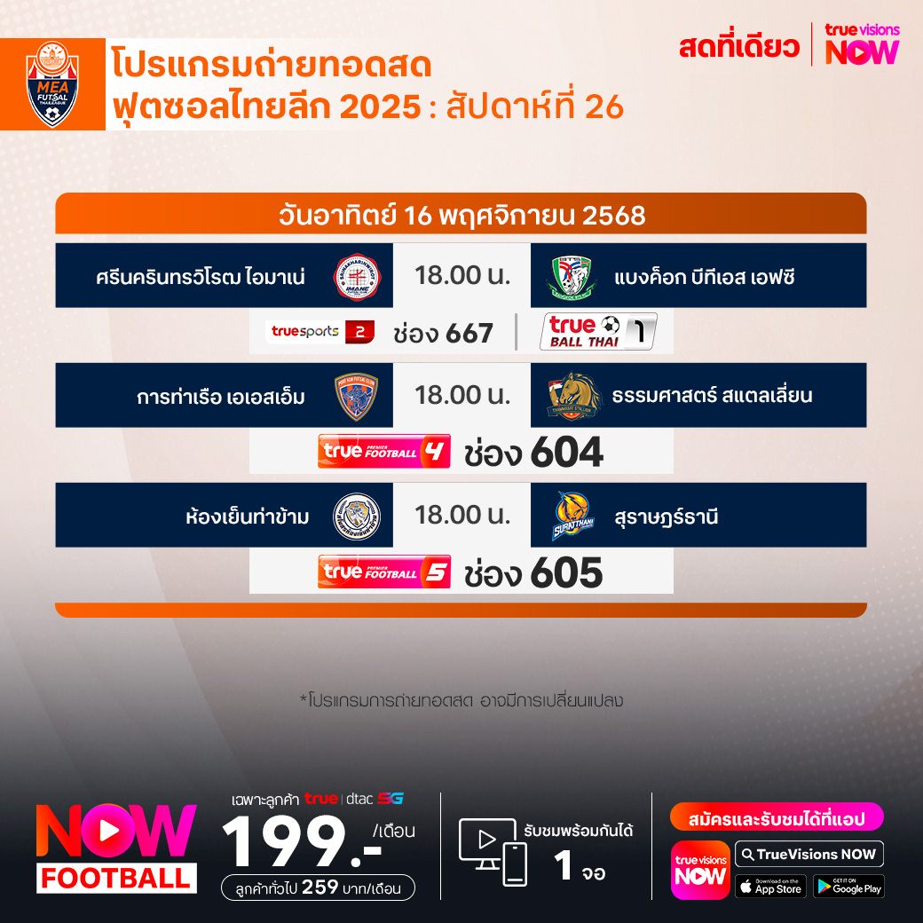 ห้องเย็นท่าข้าม พบ สุราษฎร์ธานี เวลา 18.00 ทางช่อง TPF 5(605)