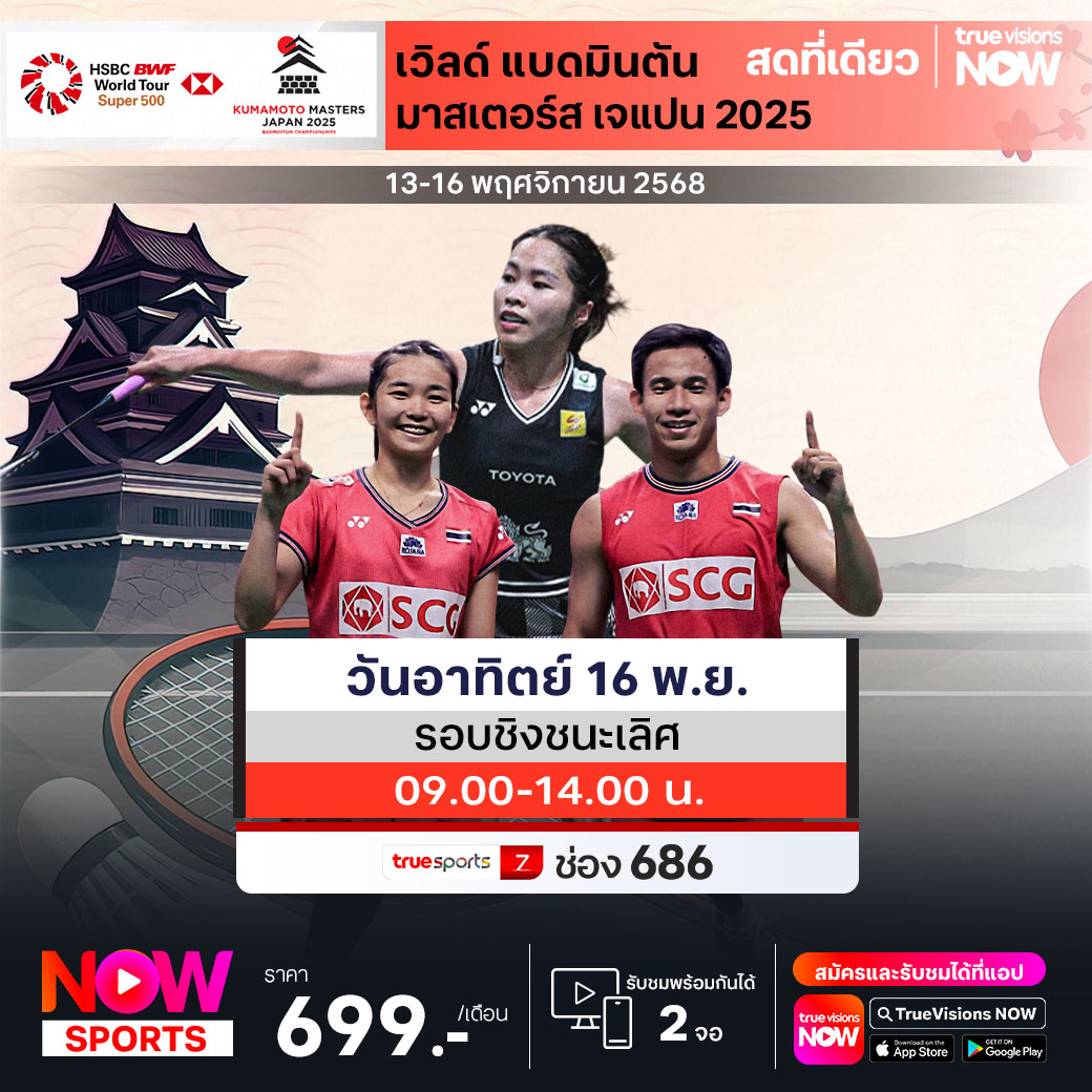 แฟนๆ กีฬาแบดมินตัน ห้ามพลาดกับการแช่งขันแบดมินตันเก็บคะแนนสะสมโลกช่วงโค้งสุดท้ายของฤดูกาล 2025 สัปดาห์นี้ ไประเบิดความมันส์กันที่ประเทศญี่ปุ่น กับรายการแห่งศักดิ์ศรี ระดับเวิลด์ ทัวร์ ซูเปอร์ 500 คุมาโมโตะ มาสเตอร์ส เจแปน บรรดามือดีของเจ้าถิ่นลงสนามกันแบบครบๆ พร้อมด้วยนักกีฬาต่างชาติที่มาลุ้นแชมป์เช่นเดียวกับทีมนักแบดมินตันไทย เชียร์สะใจ ที่ ทรูวิชั่นส์