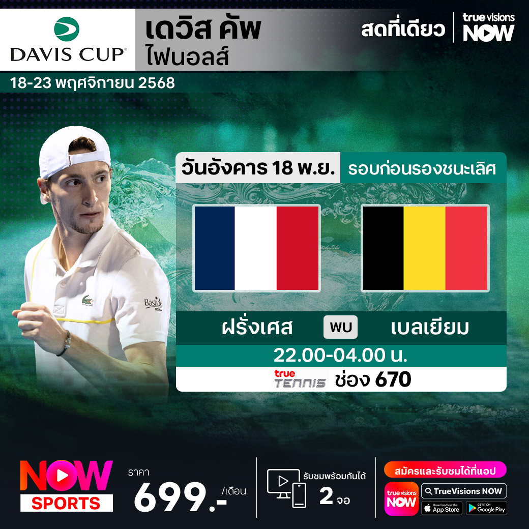 เทนนิสประเภททีมชายชิงแชมป์โลก รายการเดวิส คัพ 2025 เข้าสู่รอบชิงชนะเลิศ โดยมี 8 ประเทศที่แข็งแกร่งที่สุดผ่านเข้ามาชิงชัย เจ้าภาพ อิตาลี จะป้องกันแชมป์ได้อีกสมัย หรือจะเป็น สเปน ที่นำโดย คาร์ลอส อัลคาราซ, เยอรมนี ที่นำโดย อเล็กซานเดอร์ ซเวเรฟ และชาติอื่นๆ อีก 5 ประเทศ ร่วมลุ้นกันว่าชาติไหนจะคว้าแชมป์รายการนี้ไปครอง ชมสด ที่ ทรูวิชั่นส์