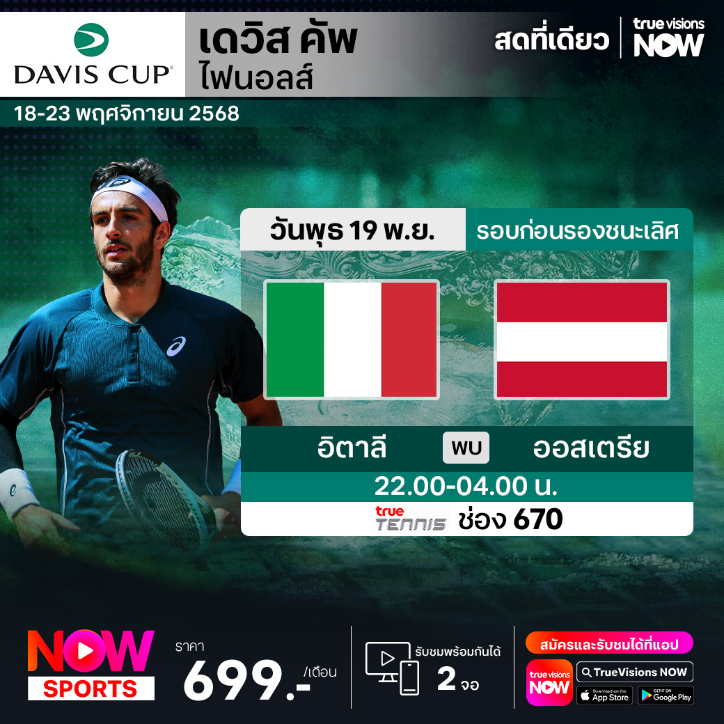 วันนี้มีอะไรดูที่ ทรูวิชั่นส์ ประจำวันพุธที่ 19 พฤศจิกายน 68 ยังคงมีกีฬาที่น่าสนใจให้ได้ตามลุ้นตามเชียร์กันเหมือนเดิม โดยในส่วนของเทนนิสยังมีศึก เดวิส คัพ 2025 ให้ได้ตามเชียร์กันต่อ ส่วนกีฬาอื่นๆ ยังมี เวิลด์ สนุกเกอร์ ทัวร์ รายการ ริยาดห์ ซีซั่น สนุกเกอร์ แชมเปี้ยนชิพ และ วอลเลย์บอล วี-ลีก งานนี้ ทรูวิชั่นส์ จัดเต็มให้ชมกันถึงบ้าน