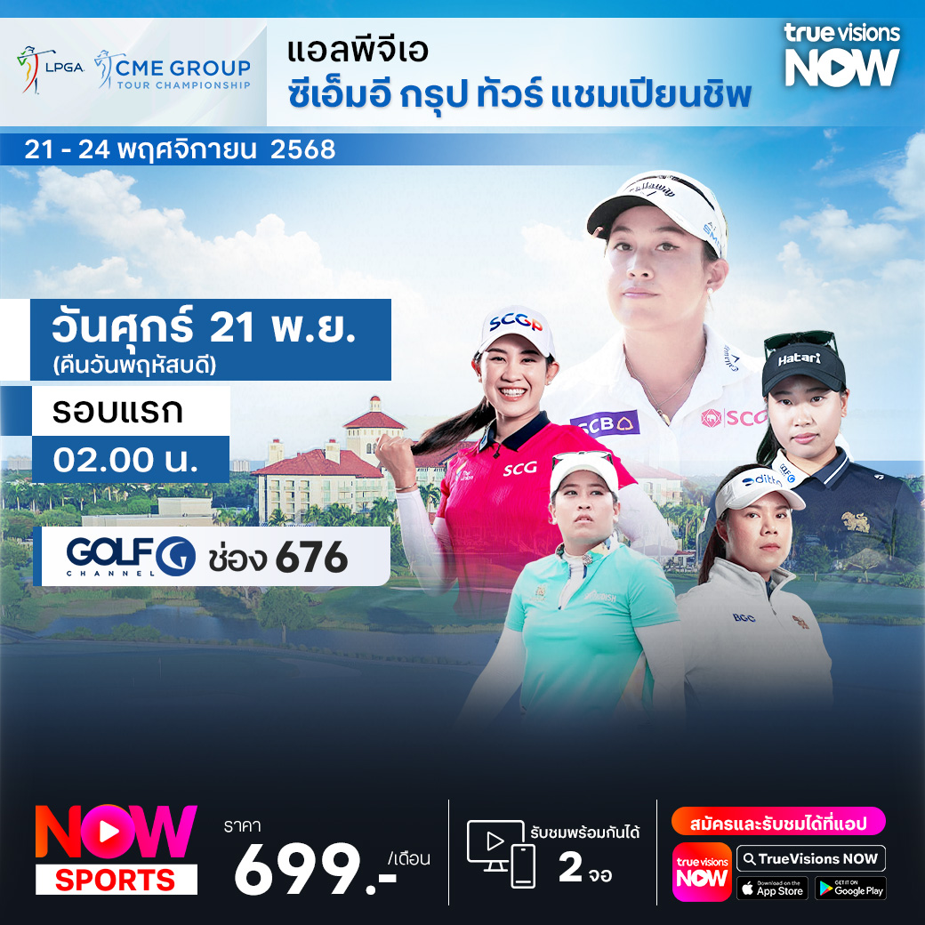 กอล์ฟหญิง แอลพีจีเอ ทัวร์ ฤดูกาล 2025 เดินทางมาถึงสัปดาห์สุดท้าย ที่จะปิดฤดูกาลกันอย่างยิ่งใหญ่สมศักดิ์ศรี บรรดาโปรระดับท็อปของทัวร์เดินทางมาร่วมแข่งขันและลุ้นแชมป์ พร้อมกับเงินโบนัสจำนวนมหาศาล ในรายการ ซีเอ็มอี กรุ๊ป ทัวร์ แชมเปี้ยนชิพ ที่สนาม ริตซ์ คาร์ลตัน รีสอร์ท ทิบิวร่อน กอล์ฟ คลับ ในเมืองเนเปิ้ลส์ รัฐฟลอริด้า ชิงเงินรางวัลรวมสูงถึง 11,000,000 เหรียญสหรัฐฯ ร่วมเชียร์โปรสาวไทย จีโน่ ธิติกุล ป้องกันแชมป์ให้ได้ ชมสด ครบทุกรอบ ที่ ทรูวิชั่นส์