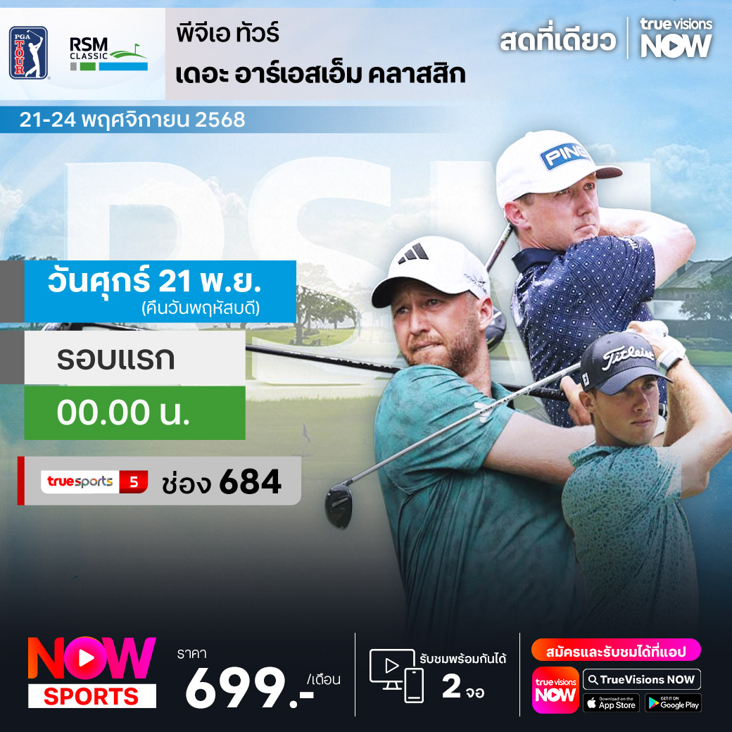 กอล์ฟ พีจีเอ ทัวร์ ช่วง เฟดเอ็กซ์ คัพ ฟอลล์ ซีรี่ส์ ฤดูกาล 2025 กลับมาแข่งขันกันต่อในสัปดาห์นี้ ในรายการ ดิ อาร์เอสเอ็ม คลาสสิก ที่สนาม ซี ไอส์แลนด์ กอล์ฟ คลับ ใน เซนต์ ไซมอน ไอส์แลนด์ รัฐจอร์เจีย ประเทศสหรัฐอเมริกา ชิงเงินรางวัลรวมมากถึง 7,000,000 เหรียญสหรัฐฯ ร่วมลุ้นกันว่าใครจะคว้าแชมป์ปีนี้ไปครอง ชมสด ครบทุกรอบ ที่ ทรูวิชั่นส์