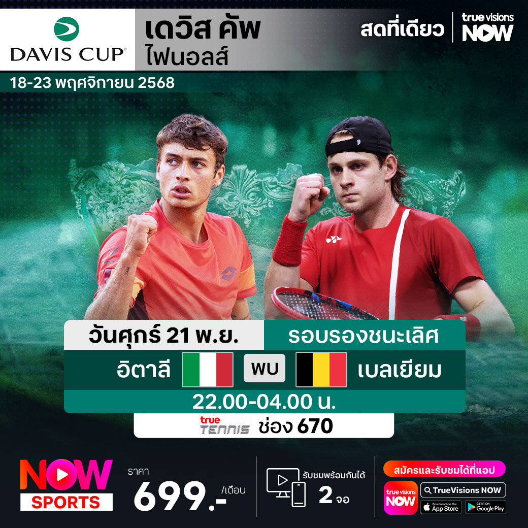 รอบรองชนะเลิศ อิตาลี พบ เบลเยียม 22.00 - 04.00 ทางช่อง True Tennis (670)