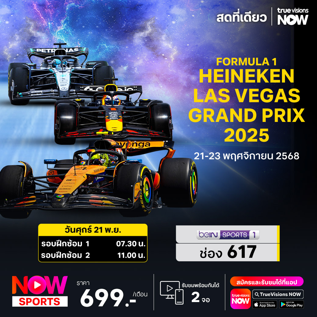 ยิ่งใกล้จบฤดูกาล ยิ่งตื่นเต้นเร้าใจ เพราะมีตำแหน่งแชมป์โลกของปี 2025 ประเภทนักแข่งเป็นเดิมพัน สำหรับศึก ฟอร์มูล่า วัน เวิลด์ แชมเปี้ยนชิพ สัปดาห์นี้พบกับรายการที่เปี่ยมไปด้วยเสน่ห์ที่เป็นเอกลักษณ์ ลาส เวกัส กรังด์ปรีซ์ จับตาดูนักแข่ง 3 อันดับแรกของคะแนนสะสม แลนโด นอร์ริส, ออสการ์ ปิแอสทรี่ และแชมป์ 4 สมัยล่าสุด แม็กซ์ เวอร์สแท็ปเพ่น ว่าใครจะคว้าชัย ชมสด ทุกช่วงการแข่งขัน ที่ ทรูวิชั่นส์