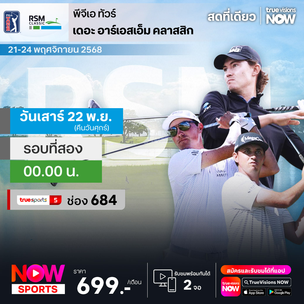 กอล์ฟ พีจีเอ ทัวร์ ช่วง เฟดเอ็กซ์ คัพ ฟอลล์ ซีรี่ส์ ฤดูกาล 2025 กลับมาแข่งขันกันต่อในสัปดาห์นี้ ในรายการ ดิ อาร์เอสเอ็ม คลาสสิก ที่สนาม ซี ไอส์แลนด์ กอล์ฟ คลับ ใน เซนต์ ไซมอน ไอส์แลนด์ รัฐจอร์เจีย ประเทศสหรัฐอเมริกา ชิงเงินรางวัลรวมมากถึง 7,000,000 เหรียญสหรัฐฯ ร่วมลุ้นกันว่าใครจะคว้าแชมป์ปีนี้ไปครอง ชมสด ครบทุกรอบ ที่ ทรูวิชั่นส์
