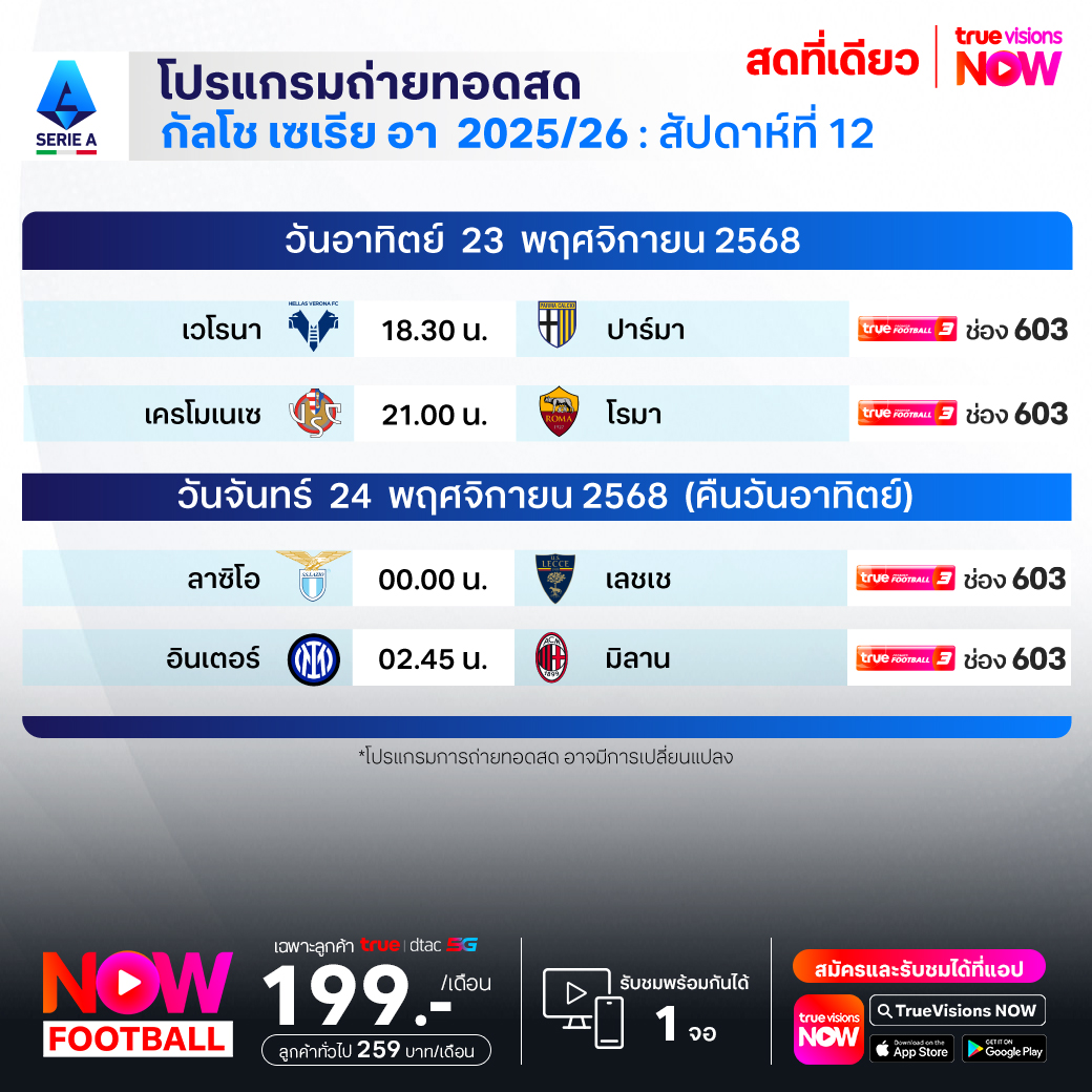 Lazio vs Lecce เวลา 00.00-02.00 ทางช่องTPF 3(603)