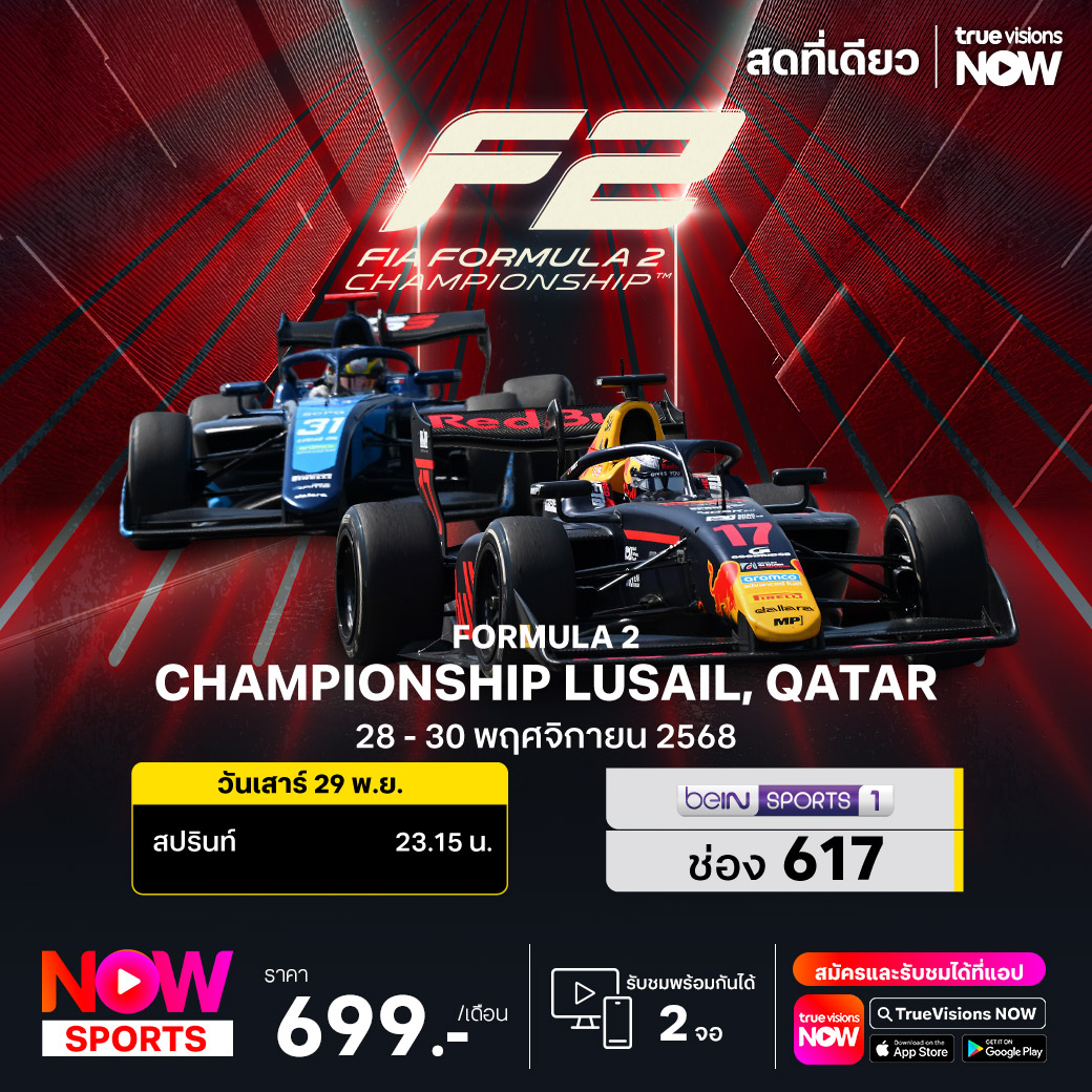 แฟนๆ มอเตอร์สปอร์ต มันส์กันต่อกับการแข่งขันที่สุดตื่นเต้น เร้าใจ ของนักแข่งดาวรุ่งอนาคตไกลในศึก ฟอร์มูล่า 2 สนามรองสุดท้ายของฤดูกาล 2025 ที่ โลเซล เซอร์กิต ประเทศกาตาร์ เป้าหมายคือเส้นชัยและการช่วงชิง 3 อันดับแรกบนโพเดี้ยม ใครจะทำได้ดีกว่ากัน และจบการแข่งขันด้วยความสำเร็จ ลุ้นกันสดๆ เอ็กซ์คลูซีฟ ทุกช่วงสำคัญของการแข่งขัน ที่ ทรูวิชั่นส์