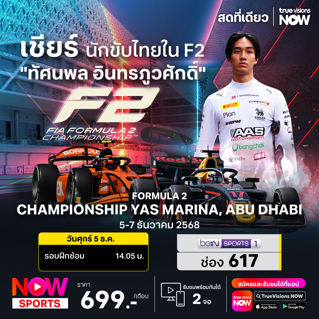 สนามส่งท้ายของฤดูกาล 2025 จับตาดู นักแข่งดาวรุ่งอนาคตไกลของวงการความเร็ว ใส่กันแบบไม่มีกั๊ก ไม่มียั้ง เพื่อจบการแข่งขันเหนือคู่แข่งในฐานะผู้ขนะในศึก ฟอร์มูล่า 2 แชมเปี้ยนชิพ, ยาส มาริน่า อาบูดาบี ในสนาม ยาส เซอร์กิต ที่สหรัฐอาหรับเอมิเรตส์ สัปดาห์นี้ ชมสด ครบทุกช่วงการแข่งขัน ที่ ทรูวิชั่นส์