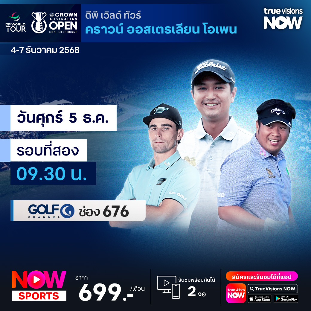 กอล์ฟ ดีพี เวิลด์ ทัวร์ เดินหน้าแข่งขันซีซั่นใหม่อย่างต่อเนื่องในดินแดน ดาวน์ อันเดอร์ สัปดาห์นี้ แฟนๆ จะได้ติดตามความสนุกตื่นเต้นของเกมกอล์ฟระดับโลก และเป็นรายการแห่งศักดิ์ศรีที่มีประวัติศาสตร์อันยาวนานอย่าง คราวน์ ออสเตรเลียน โอเพ่น 2025 ที่สนามชื่อดังอย่าง รอยัล เมลเบิร์น กอล์ฟ คลับ ที่เมืองเมลเบิร์น ประเทศออสเตรเลีย มือดีของโลกร่วมดวลคับคั่ง รวมทั้ง "โปรอาร์ม" กีรเดช อภิบาลรัตน์ จากไทย ลุ้นกันว่าใครจะคว้าแชมป์ไปครอง ชมสด ครบทุกรอบ ที่ ทรูวิชั่นส์