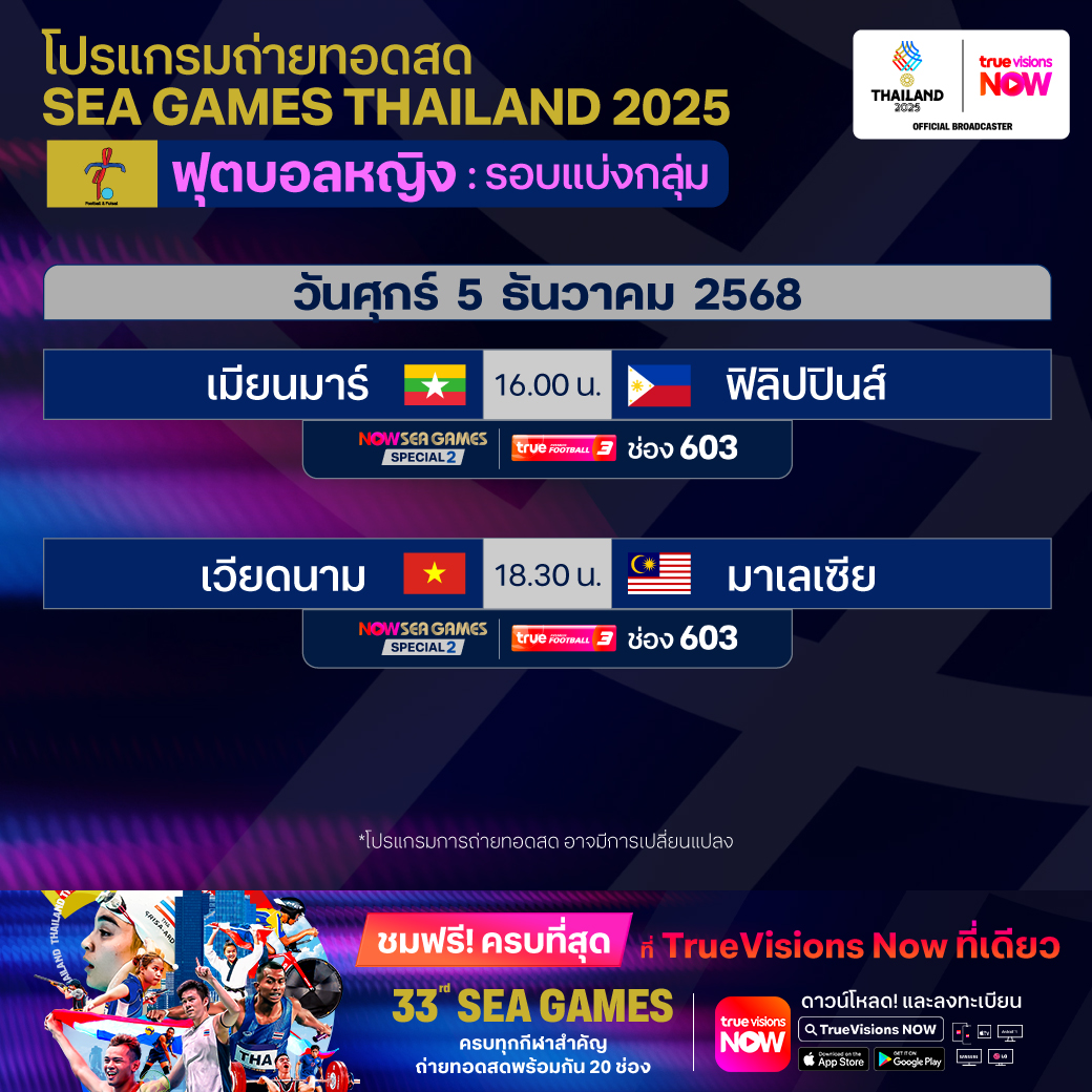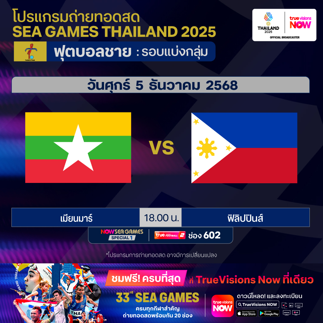 Myanmar vs Philippines เวลา 18.00-20.00 ทางช่อง NOW SEA GAMES SPECIAL 1 (602)
