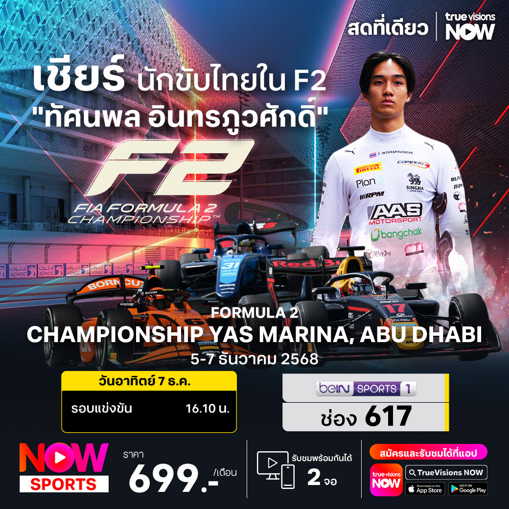 สนามส่งท้ายของฤดูกาล 2025 จับตาดู นักแข่งดาวรุ่งอนาคตไกลของวงการความเร็ว ใส่กันแบบไม่มีกั๊ก ไม่มียั้ง เพื่อจบการแข่งขันเหนือคู่แข่งในฐานะผู้ขนะในศึก ฟอร์มูล่า 2 แชมเปี้ยนชิพ, ยาส มาริน่า อาบูดาบี ในสนาม ยาส เซอร์กิต ที่สหรัฐอาหรับเอมิเรตส์ สัปดาห์นี้ ชมสด ครบทุกช่วงการแข่งขัน ที่ ทรูวิชั่นส์