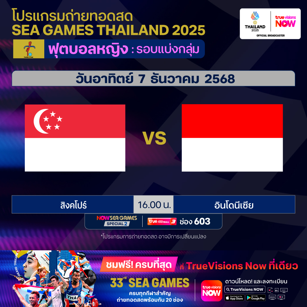 ฟุตบอลหญิง สิงคโปร์ พบ อินโดนีเซีย เวลา 16.00