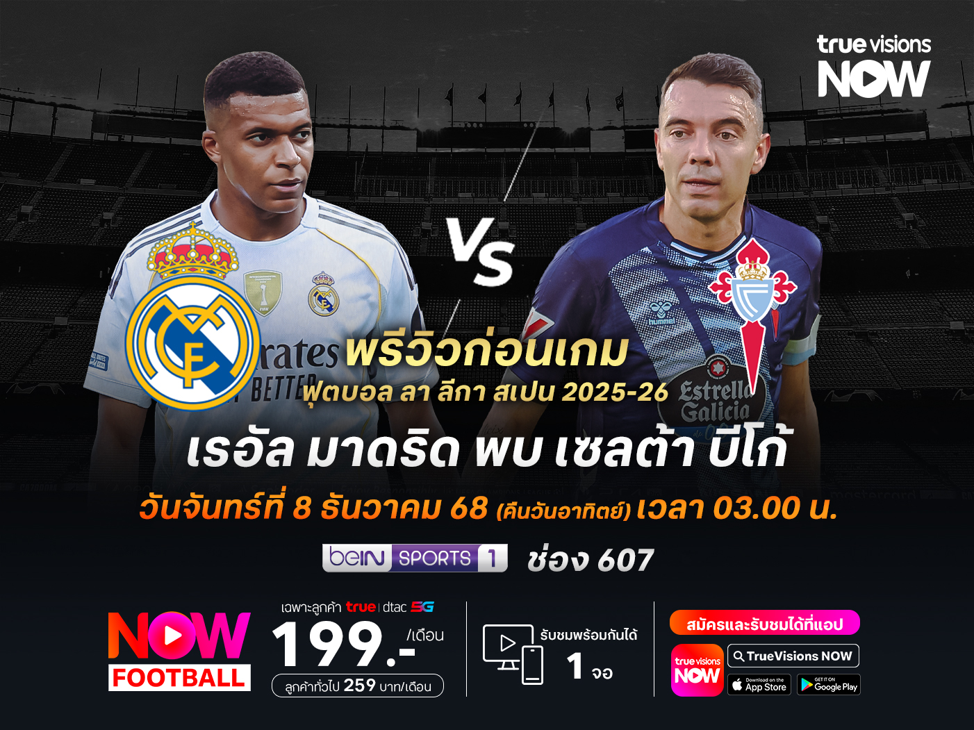ถ่ายทอดสดทาง : beIN Sports 1 (ช่อง 607)