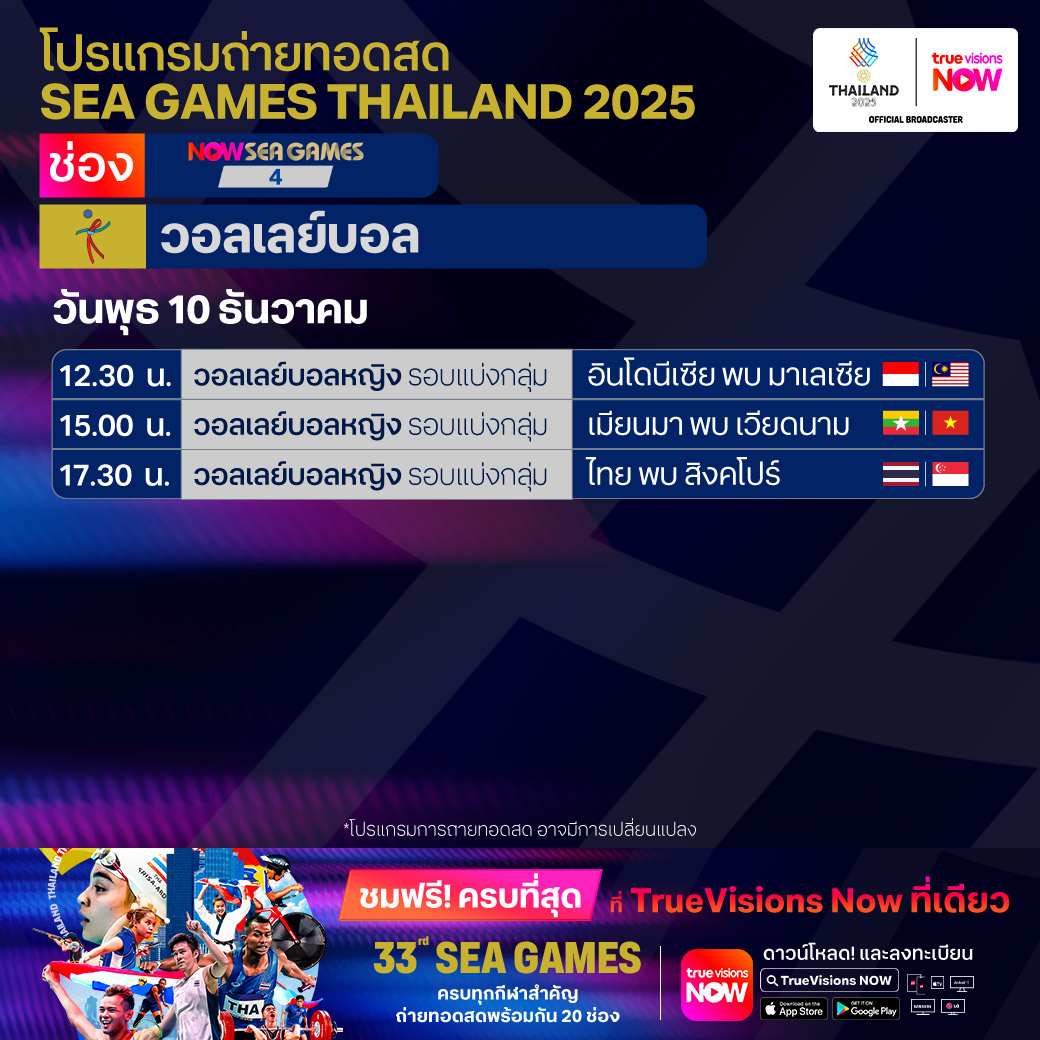 วอลเลย์บอลหญิง ไทย พบ สิงคโปร์ รอบแบ่งกลุ่ม เวลา 17.30