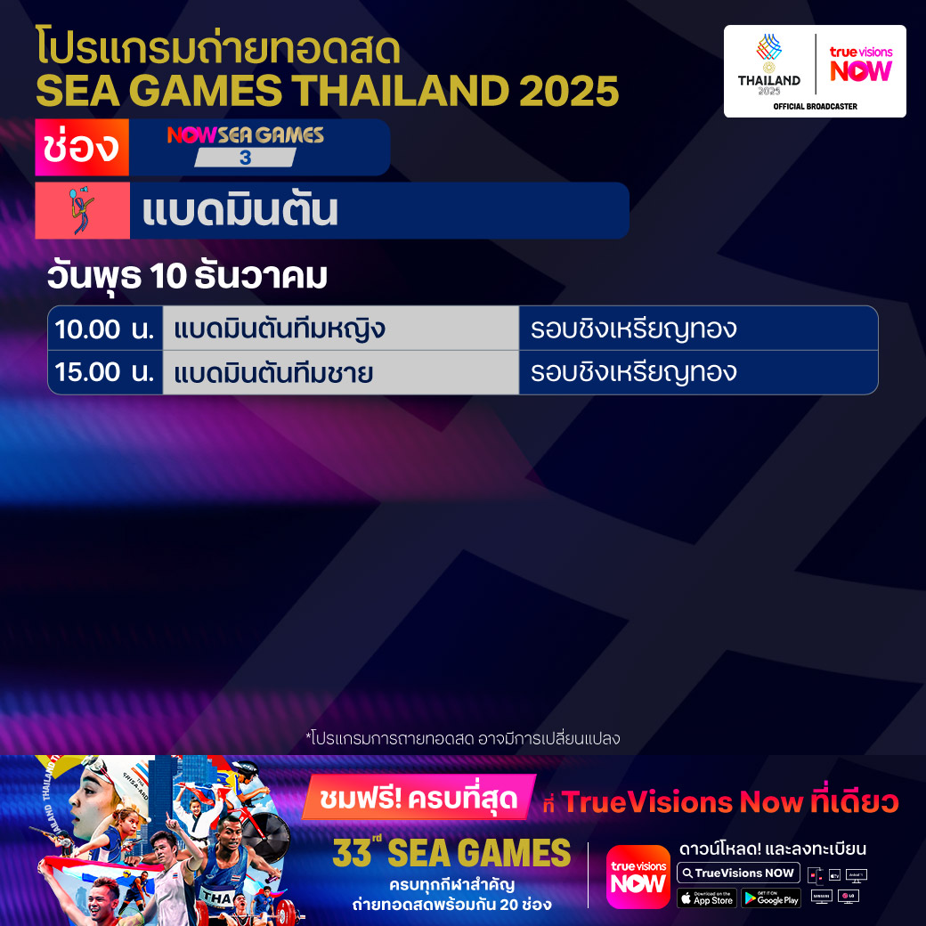 แบดมินตันทีมหญิง รอบชิงเหรียญทอง เวลา 10.00