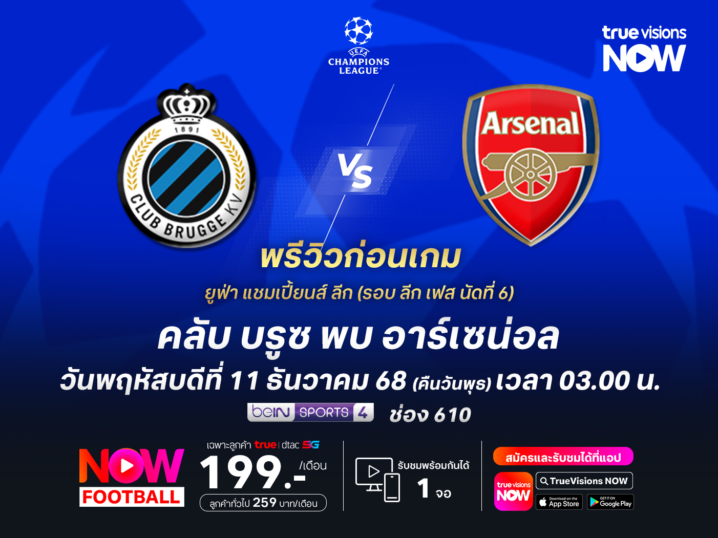 ศึก ยูฟ่า แชมเปี้ยนส์ ลีก 2025-26 รอบ ลีก เฟส นัดที่หก คลับ บรูซ จากเบลเยียม จะเล่นที่ ยาน เบรย์เดล สเตเดี้ยม รับการมาเยือนของ อาร์เซน่อล จากอังกฤษ โดยเกมนี้ คลับ บรูซ เจ้าถิ่น กำลังอยู่ในช่วงฟอร์มตก หลังแพ้ 4 จาก 6 นัดหลังสุดในทุกรายการ ขณะที่ อาร์เซน่อล แม้จะแพ้มาในพรีเมียร์ลีก แต่ฟอร์มในภาพรวมนั้นยังยอดเยี่ยมมาก เนื่องจากชนะได้ถึง 15 จาก 19 นัดหลังสุด และเชื่อว่าเกมนี้พวกเขาจะบุกมาเก็บ 3 คะแนนได้ไม่ยาก พร้อมกับทำสถิติชนะใน แชมเปี้ยนส์ ลีก 6 นัดรวด
