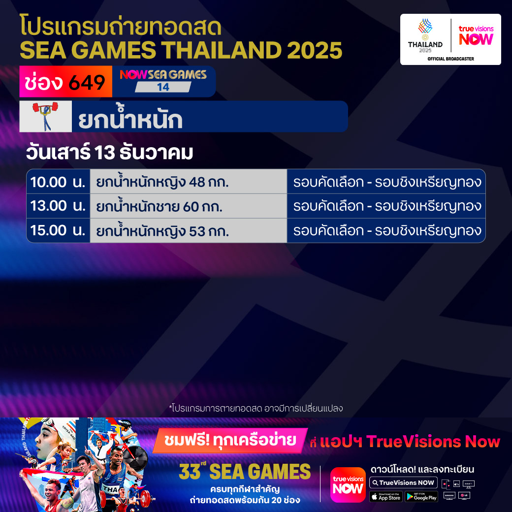 ยกน้ำหนักหญิง 53 กก. รอบคัดเลือก - รอบชิงเหรียญทอง เวลา 15.00