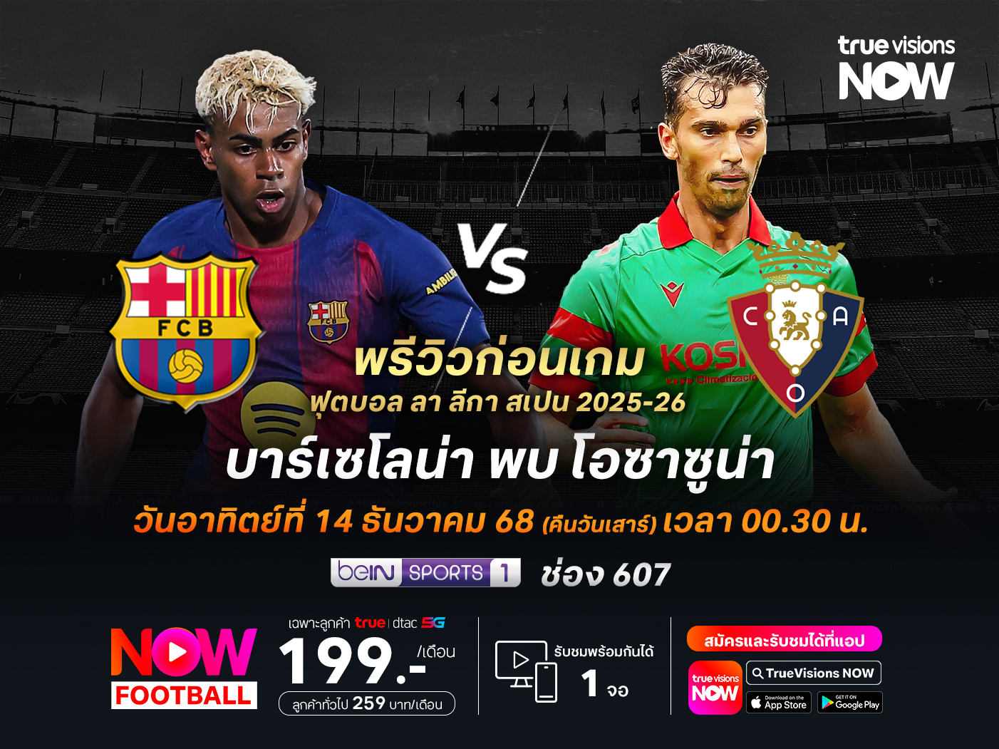 ศึก ลา ลีกา สเปน 2025-26 บาร์เซโลน่า จะเล่นที่ สปอติฟาย คัมป์ นู รับการมาเยือนของ โอซาซูน่า โดยเกมนี้ บาร์เซโลน่า เจ้าถิ่น กำลังอยู่ในฟอร์มที่ยอดเยี่ยม ชนะมา 4 นัดติดต่อกัน และชนะ 7 จาก 9 เกมหลังสุดในทุกรายการ ขณะที่ โอซาซูน่า กำลังหนีตกชั้นอย่างเต็มที่ เกมล่าสุดชนะมาได้ก็จริง แต่ฟอร์มในภาพรวมถือว่าค่อนข้างย่ำแย่ เพราะชนะได้เพียงเกมเดียวจาก 7 นัดหลังสุดในลีก