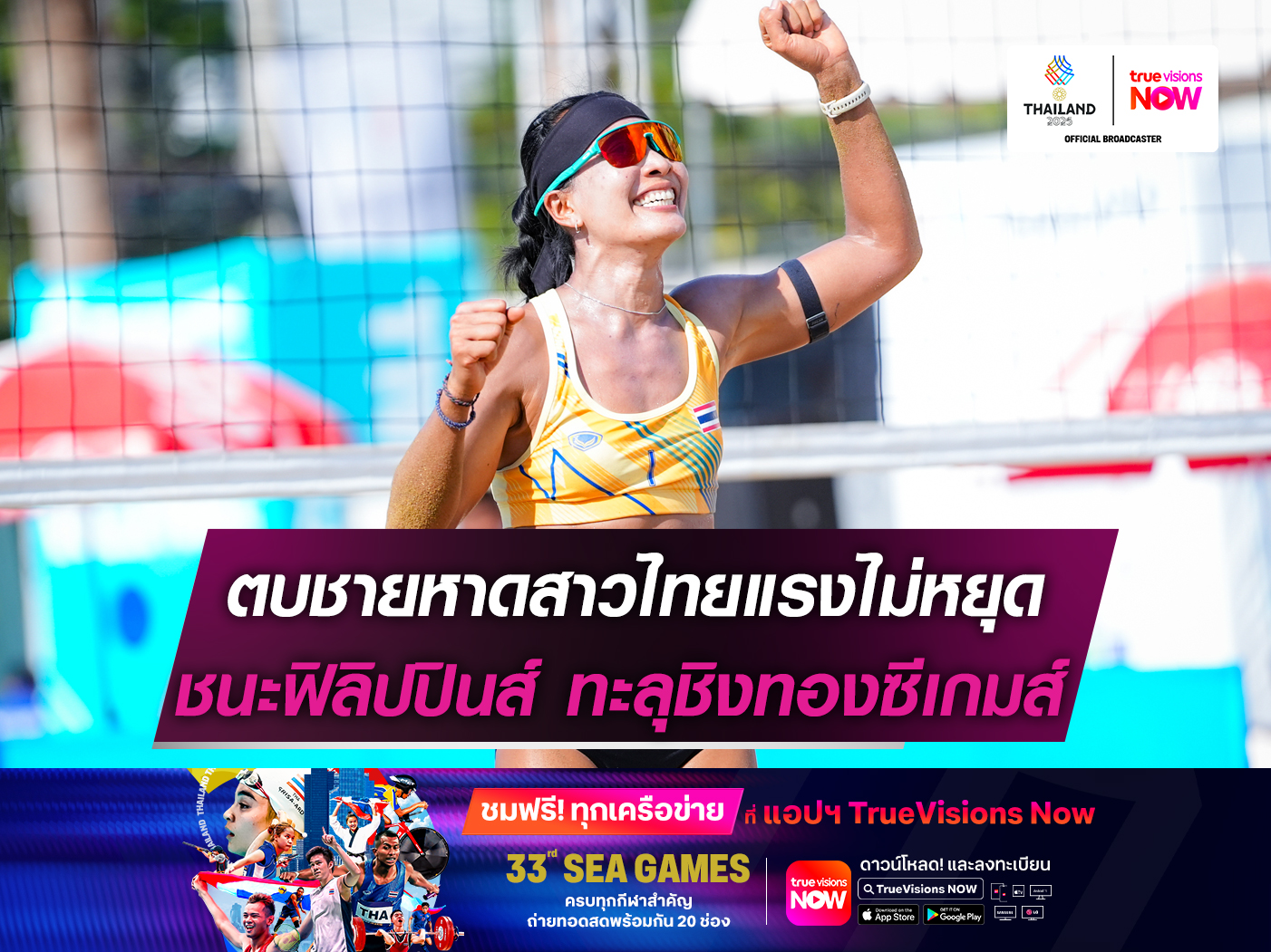 วอลเลย์บอลชายหาดหญิงไทยโชว์ฟอร์มแกร่ง ชนะฟิลิปปินส์ 2 คู่รวด ปิดรอบแรกด้วยผลงานชนะ 5 เกมติด คว้าอันดับ 1 ผ่านเข้าไปลุ้นเหรียญทองซีเกมส์ ครั้งที่ 33 อีกครั้ง