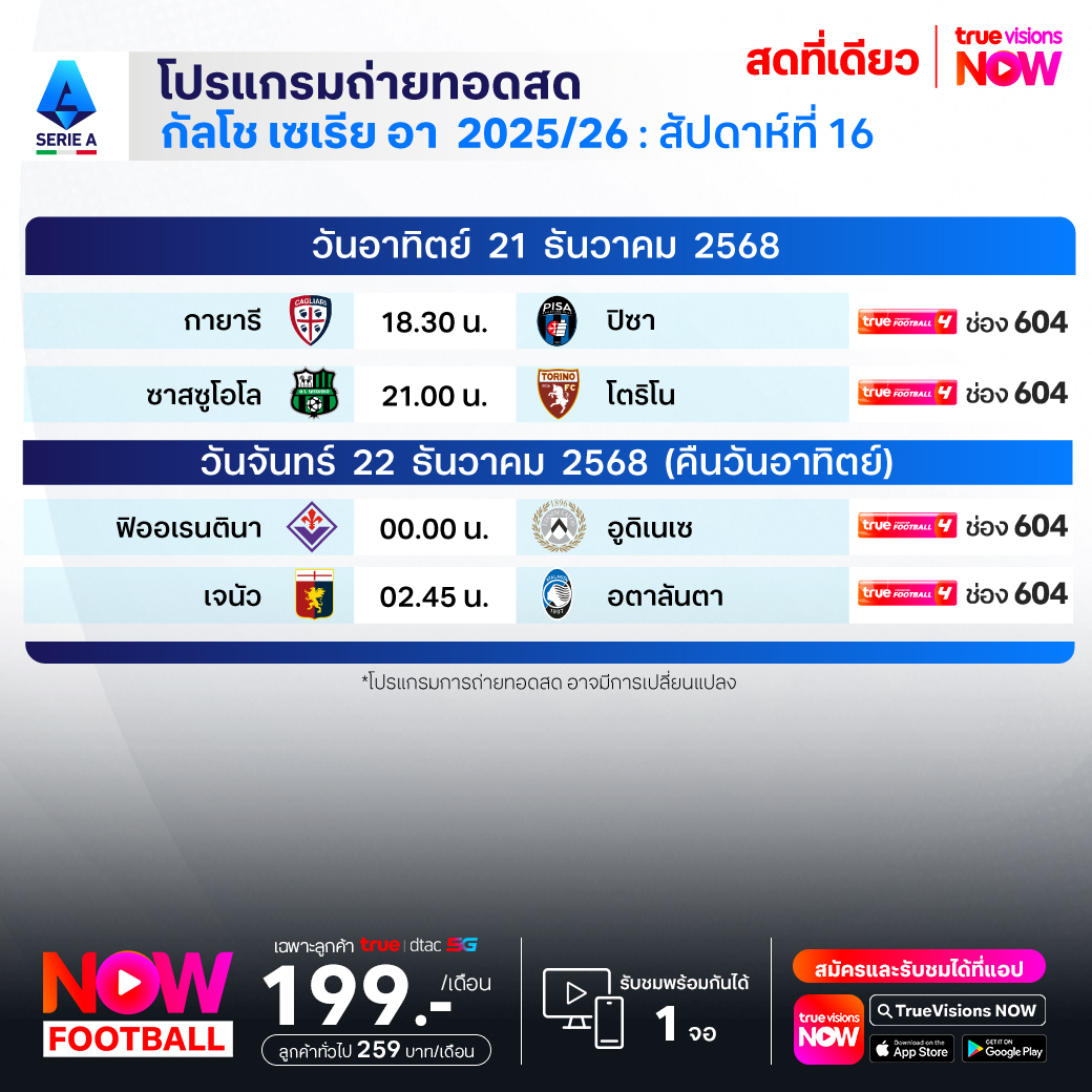 Genoa vs Atalanta เวลา 02.45-04.45 ทางช่องTPF 4(604)