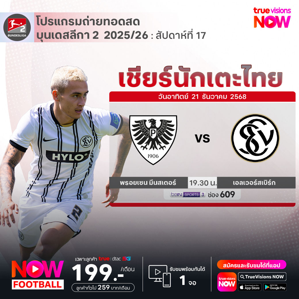 Preußen Munster vs Elversberg เวลา 19.30-21.30 ทางช่อง beIN 3 (609)