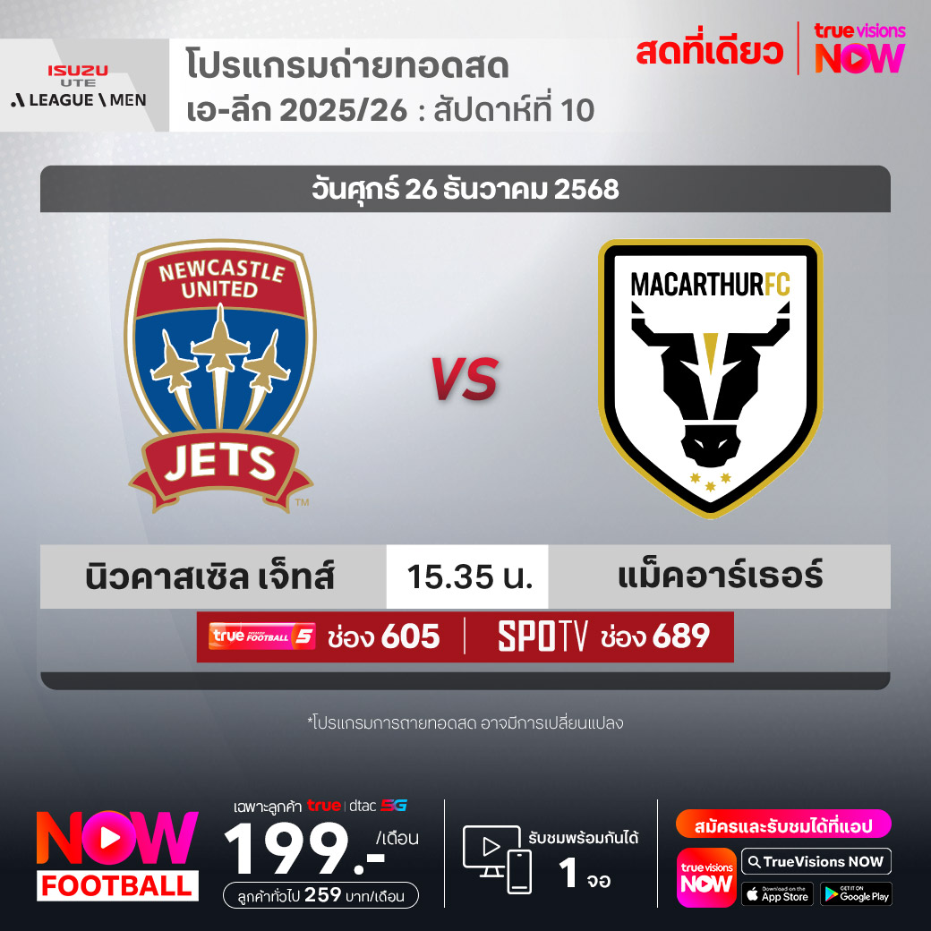 Newcastle Jets FC vs Macarthur FC เวลา 15.35-17.35 ทางช่องTPF 5(605) / SPOTV (689)